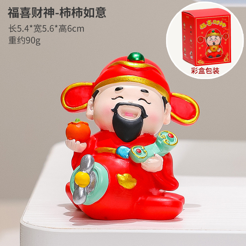 新款柿柿如意财神爷树脂工艺品摆件创意卡通家居客厅电视柜装饰品