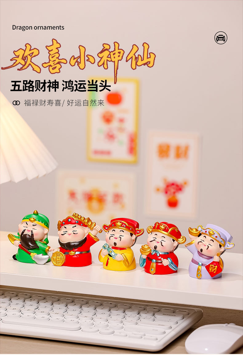 五路财神摆件高级感树脂工艺品新款卡通可爱手工办公室装饰礼物新
