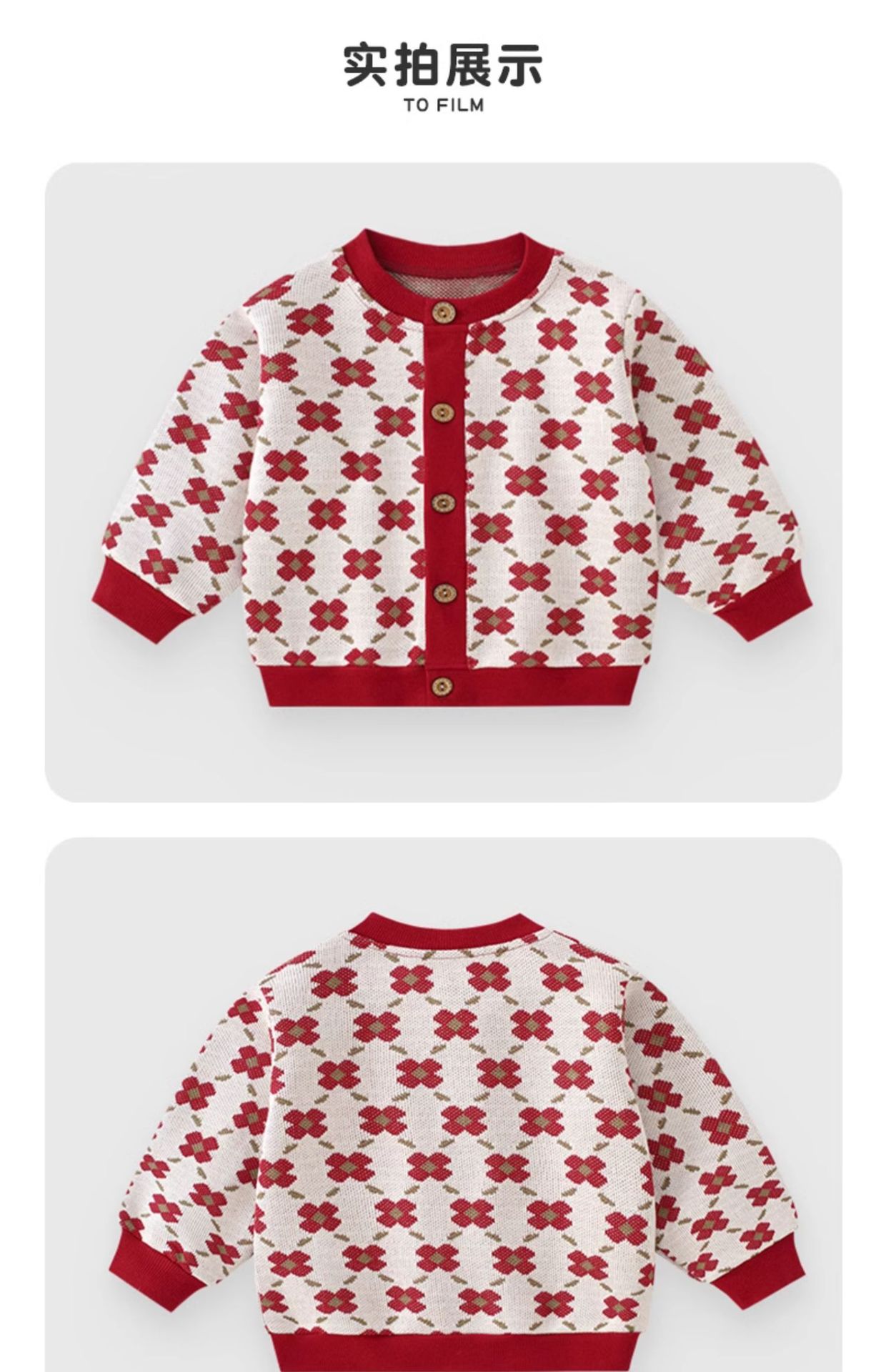 아기의 새해 옷 가을과 겨울 소녀의 새해 스웨터 코트 축제 신년 옷 겨울 빨간 아기 니트 탑