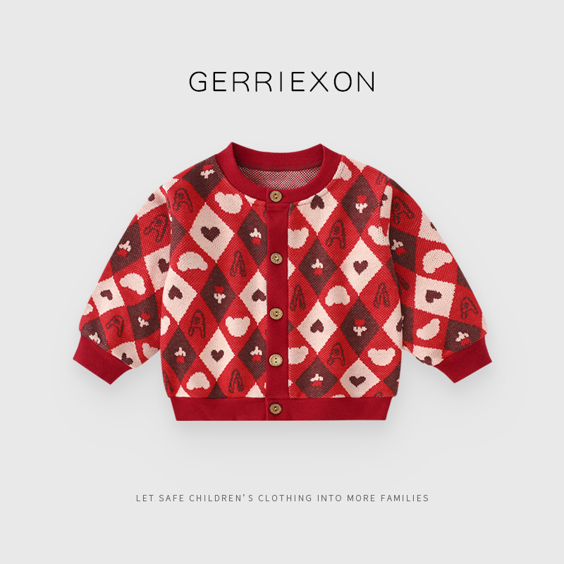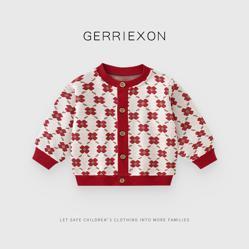 아기의 새해 옷 가을과 겨울 소녀의 새해 스웨터 코트 축제 신년 옷 겨울 빨간 아기 니트 탑스토어 가기
