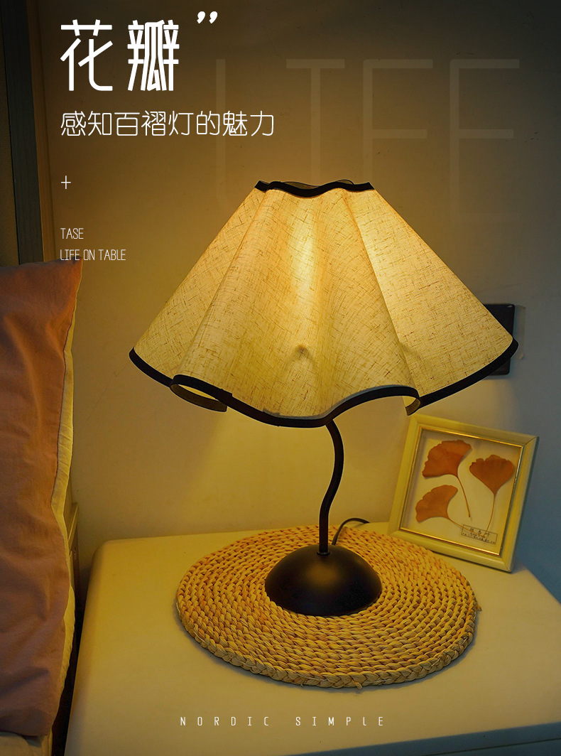중간 고대 빈티지 침실 침실 테이블 램프 프랑스 레트로 난양 스타일 분위기 거실 연구 꽃잎 단단한 나무 램프스토어 가기