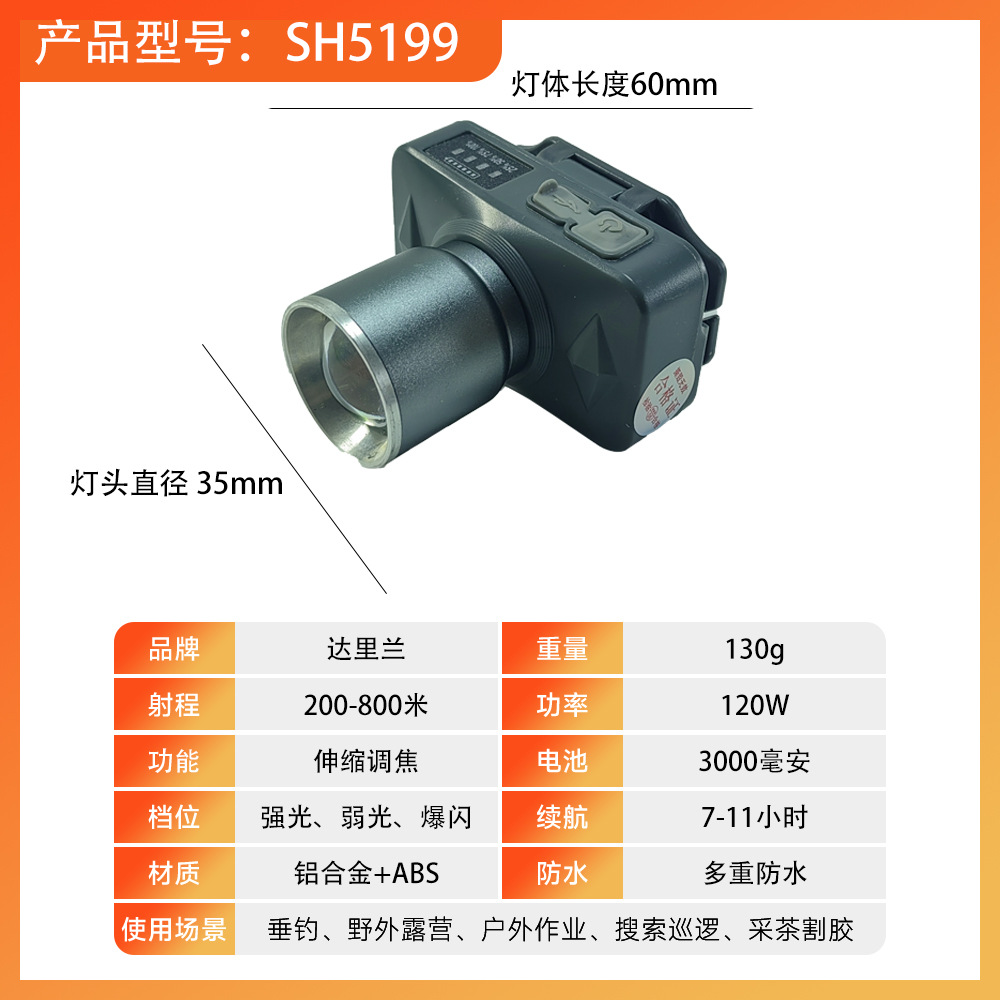• SH5200-150W 듀얼 리튬 배터리 텔레스코픽 포커싱 [충전 케이블 및 헤드밴드 포함], 배터리 수명 18시간