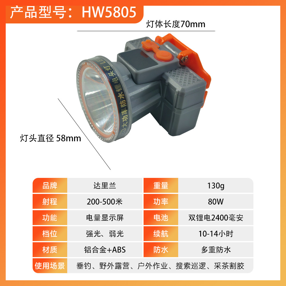 • HW5805-80W 듀얼 리튬 배터리 [플러시 와이어 및 헤드 로프 포함] 배터리 수명 15시간