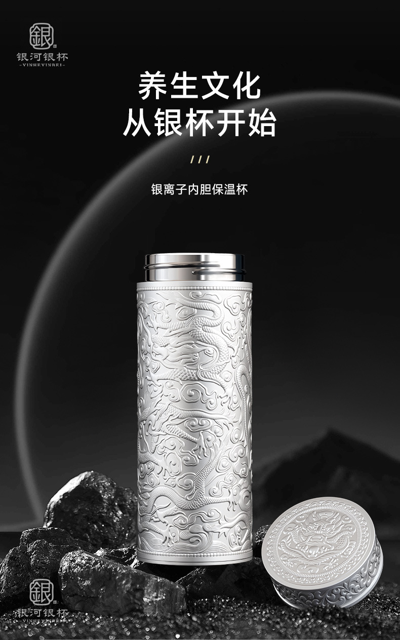 您选用的银离子工艺杯内胆是用银为原材料,本工艺杯采用传统宫廷工艺结合高科技术精制而成,具有精美的图案,大方的造型和不变色、不易破碎等特点,是收藏、是用和馈赠亲友的工艺礼品。