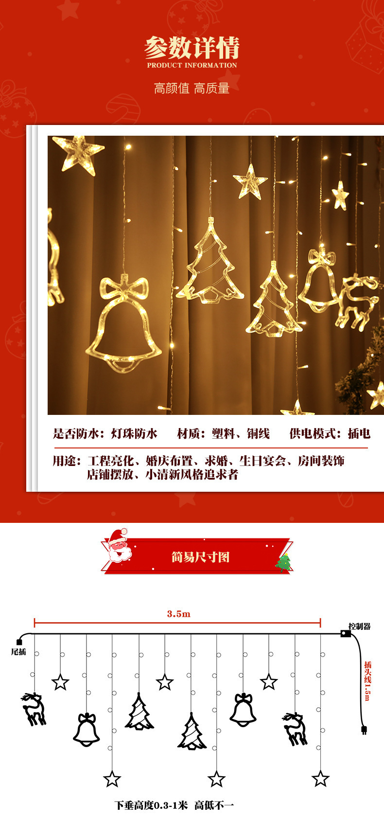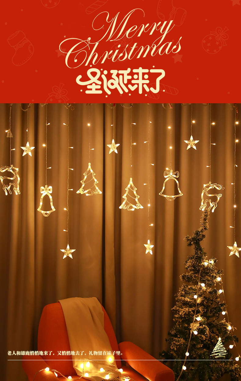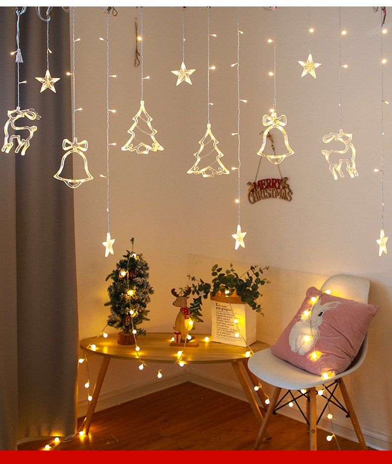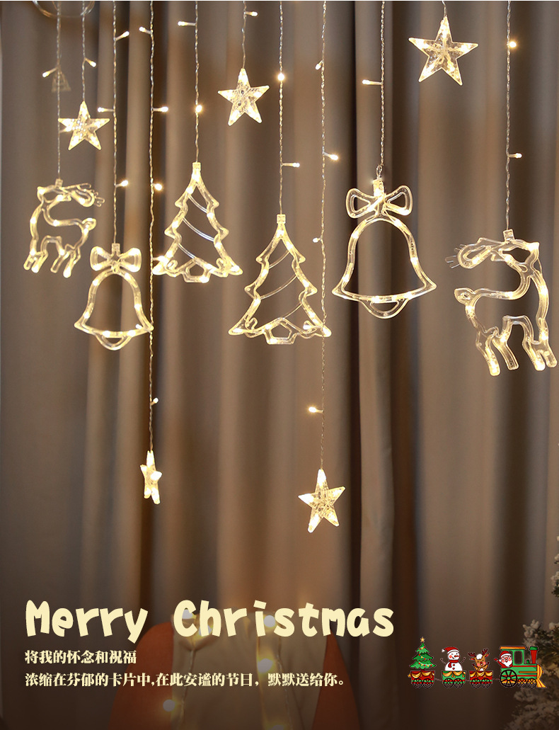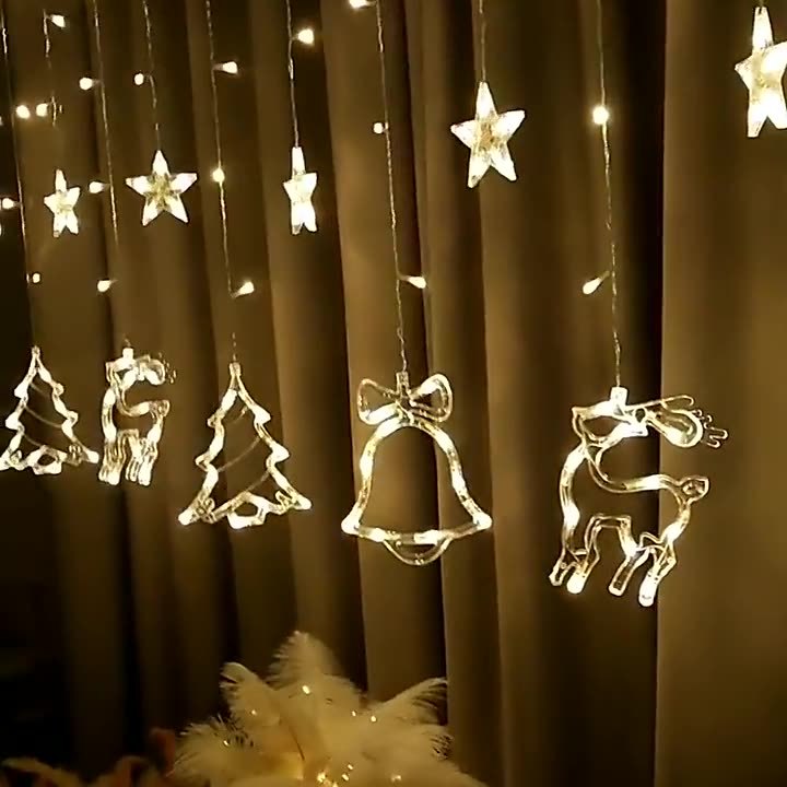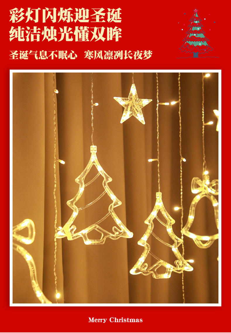 신제품 크리스마스 LED 커튼 조명 엘크 크리스마스 트리 창문 장식 조명 스트링 휴일 파티 분위기 조명 라이트 스트립스토어 가기