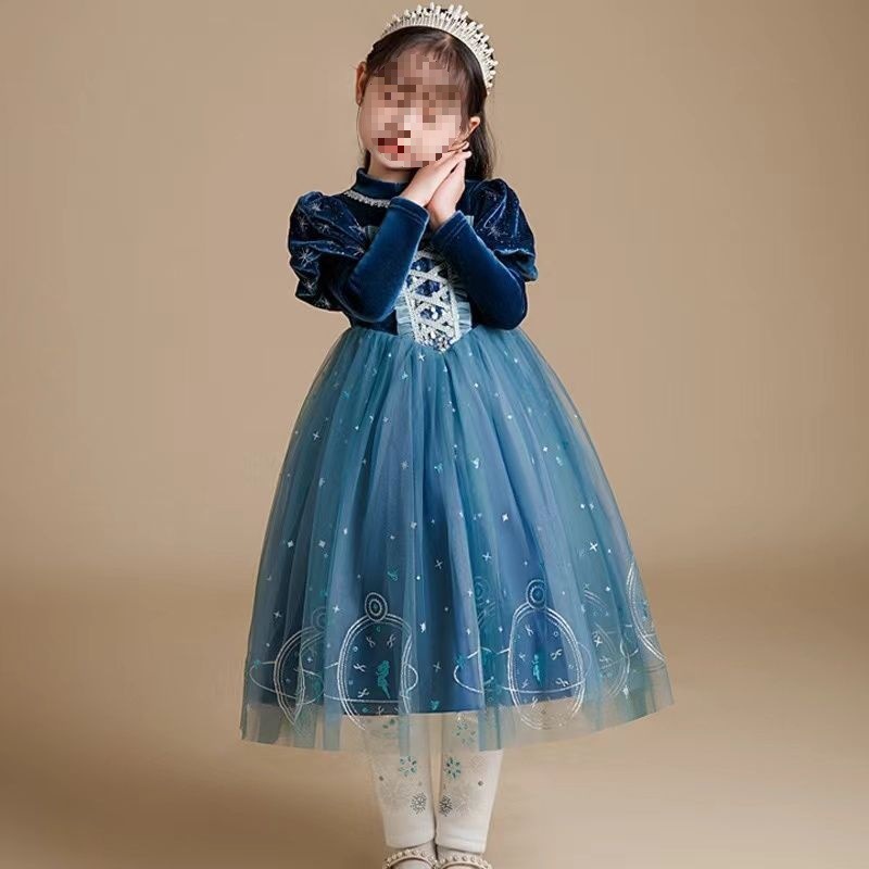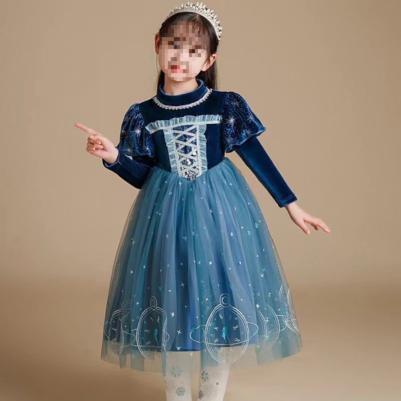 아이샤 냉동 공주 소녀의 가을과 겨울 스커트 새로운 원피스 어린이 서양식 원피스 아이샤 생일 원피스