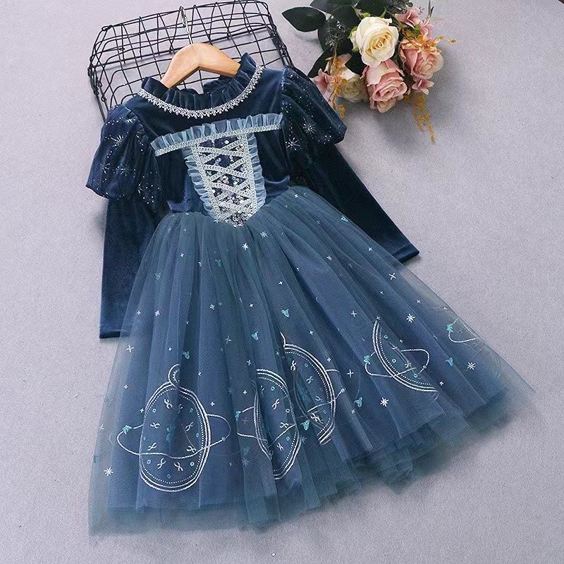 아이샤 냉동 공주 소녀의 가을과 겨울 스커트 새로운 원피스 어린이 서양식 원피스 아이샤 생일 원피스스토어 가기