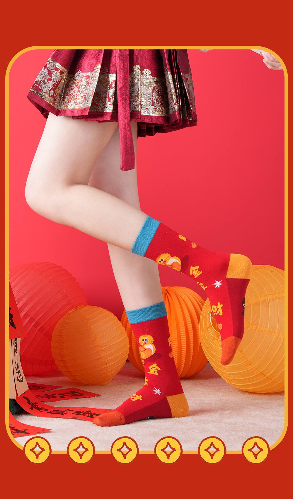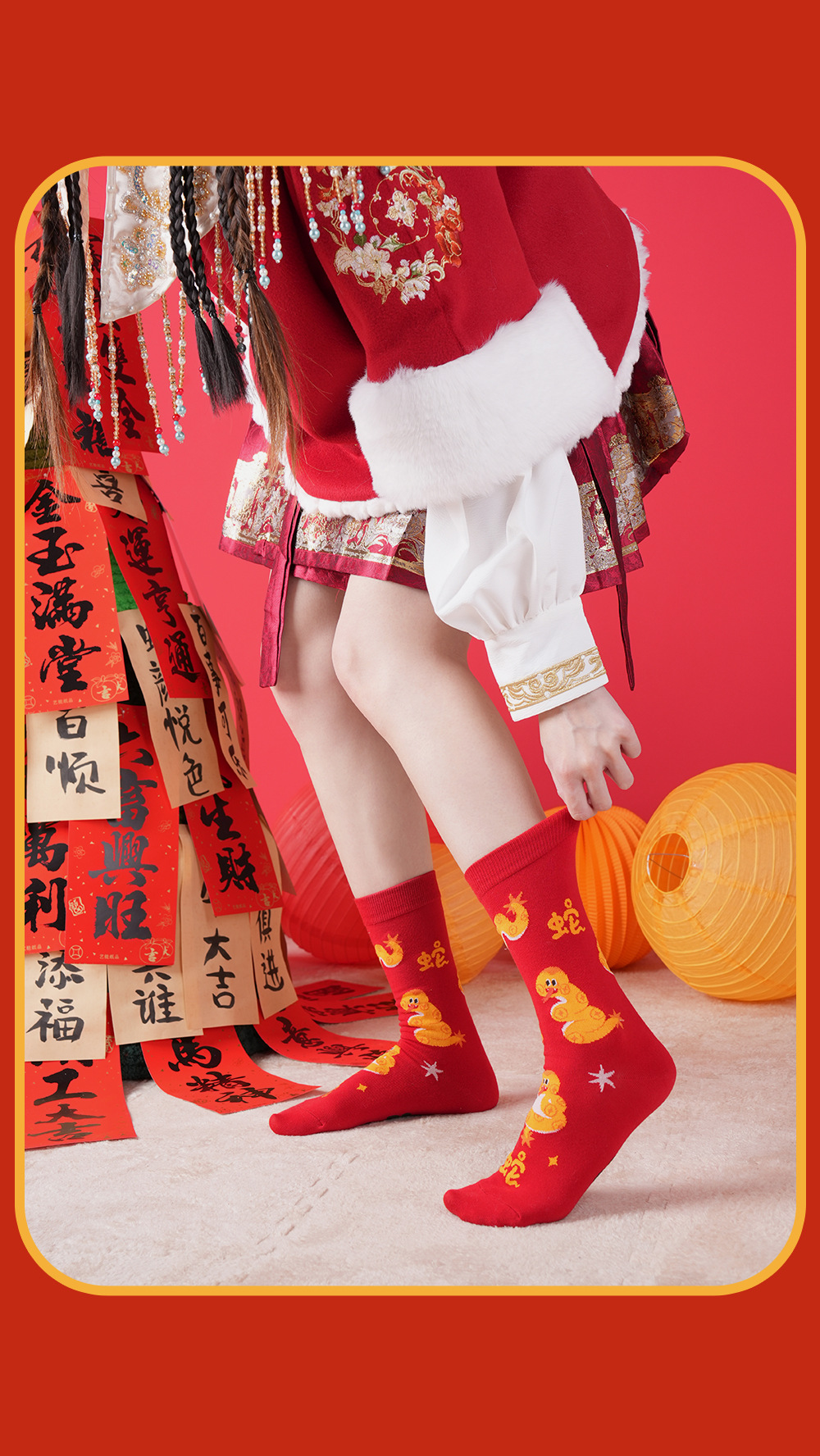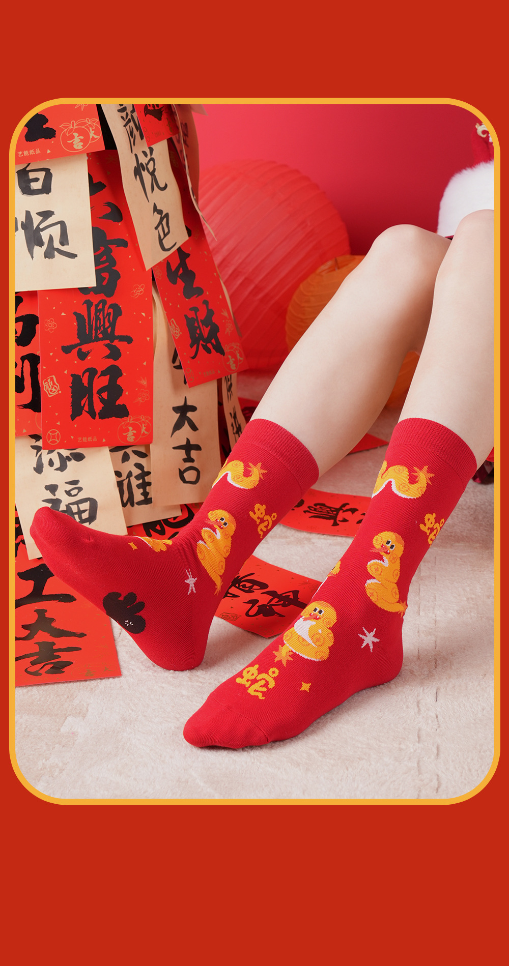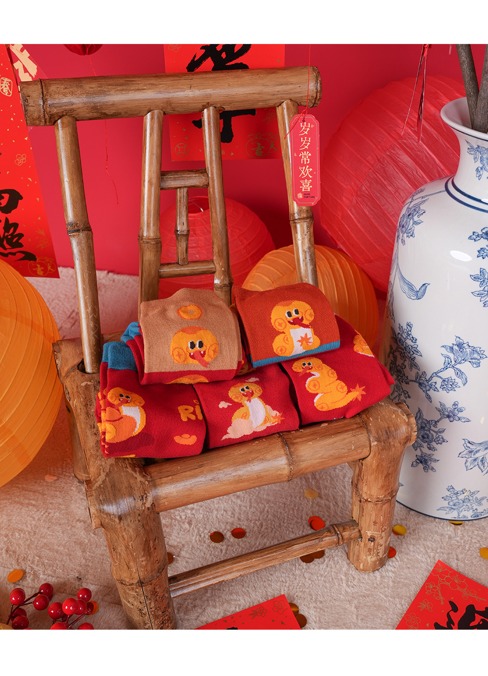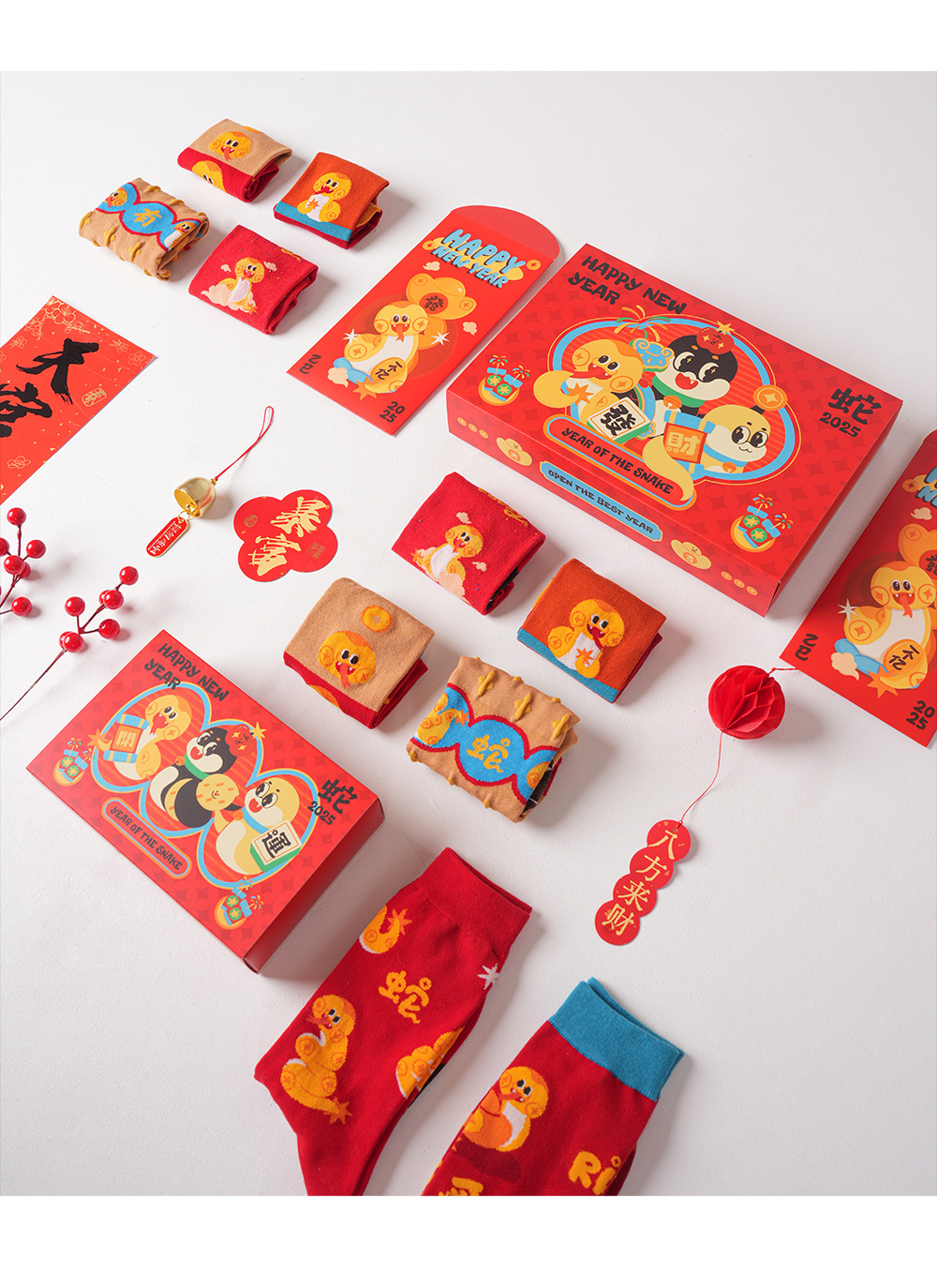 2025 년 뱀의 원래 빨간 양말 선물 상자 가을과 겨울 면 남자와 여자의 귀여운 새해 선물 빨간 양말스토어 가기