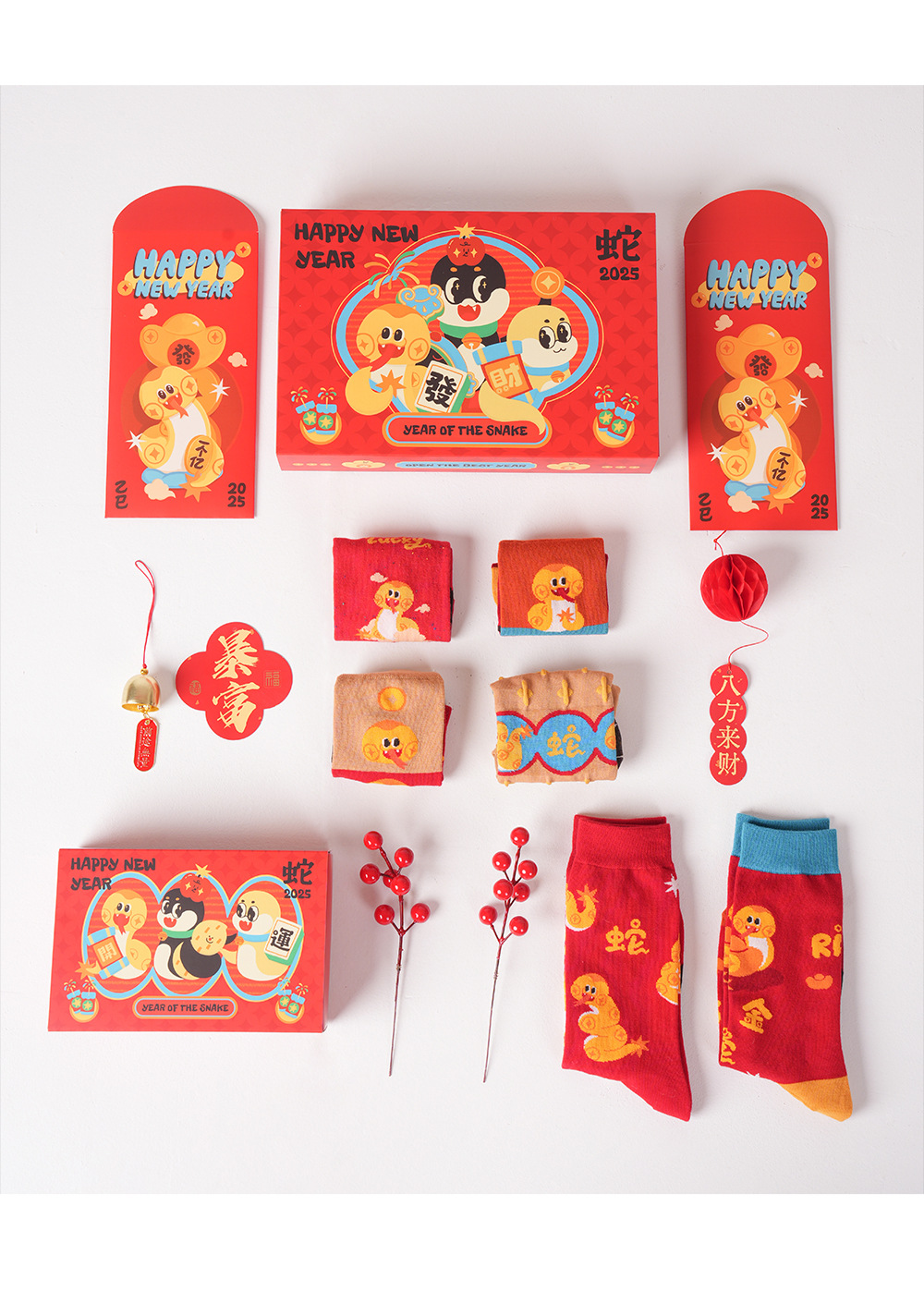2025 년 뱀의 원래 빨간 양말 선물 상자 가을과 겨울 면 남자와 여자의 귀여운 새해 선물 빨간 양말