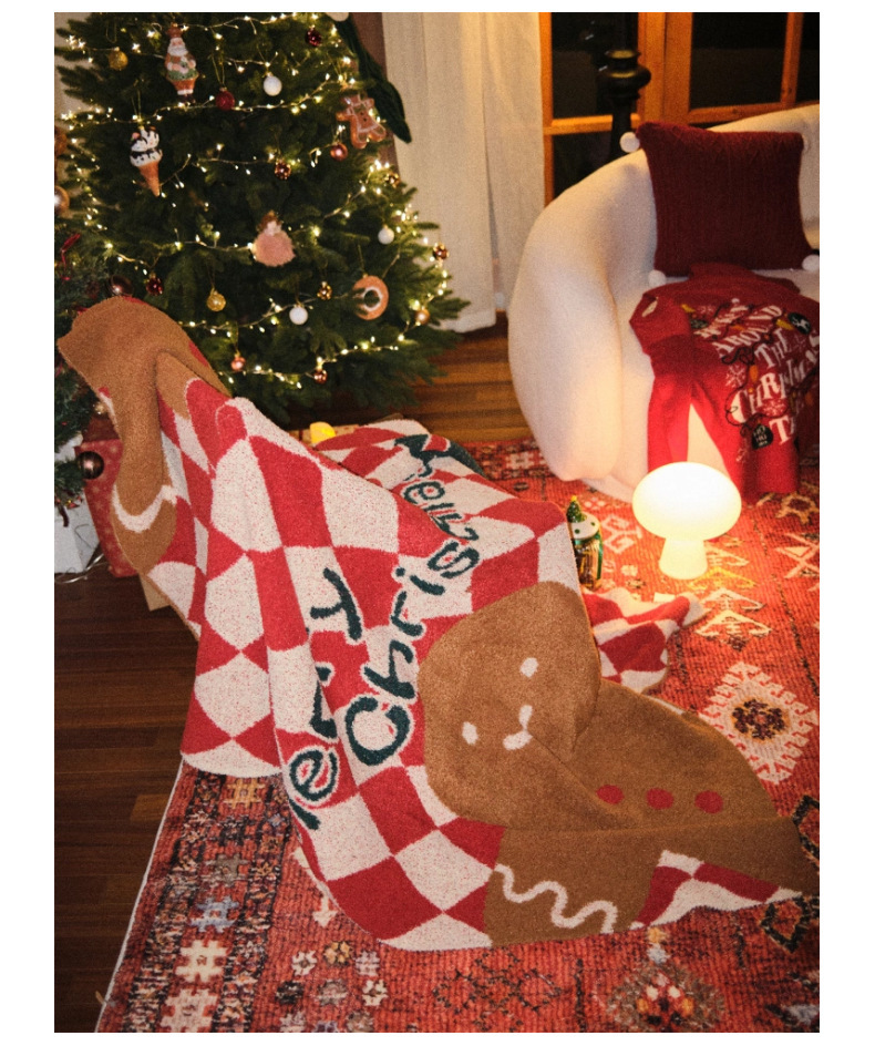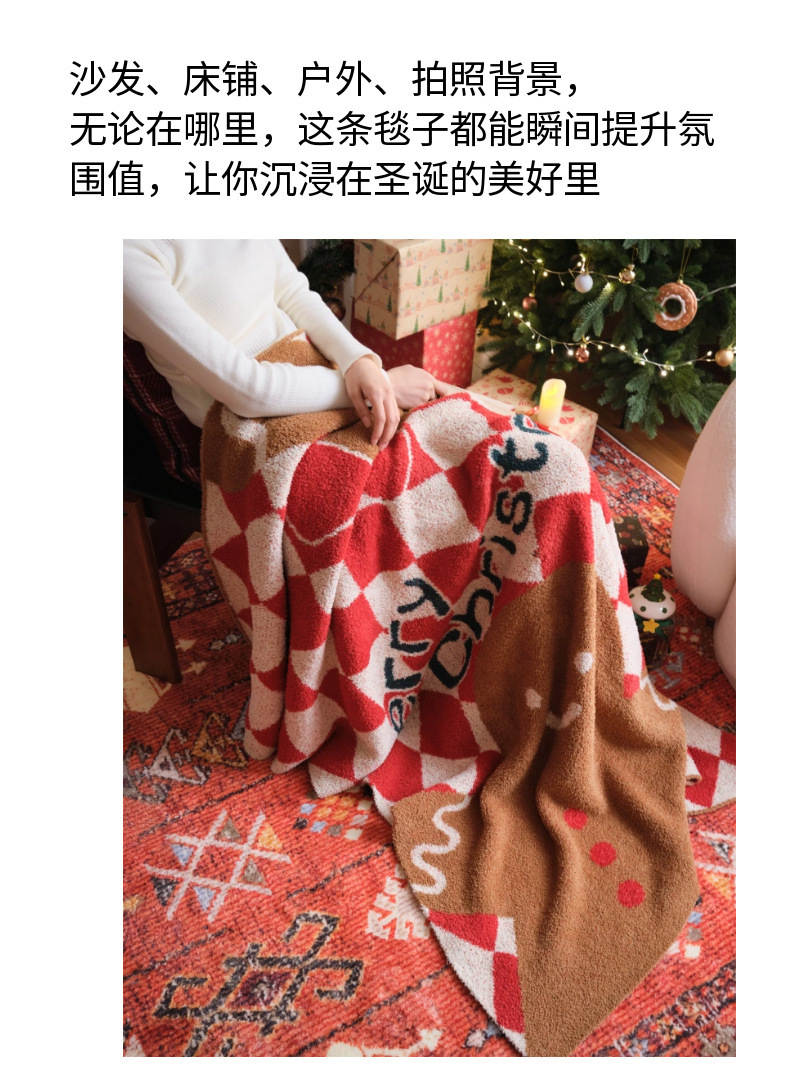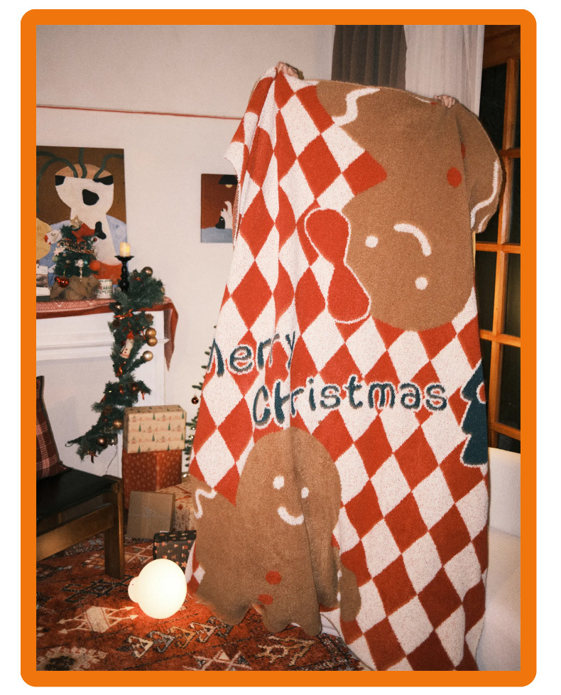 북유럽 새로운 크리스마스 진저 브레드 남자 니트 담요 휴일 장식 담요 홈 소파 담요 반쪽 벨벳 담요