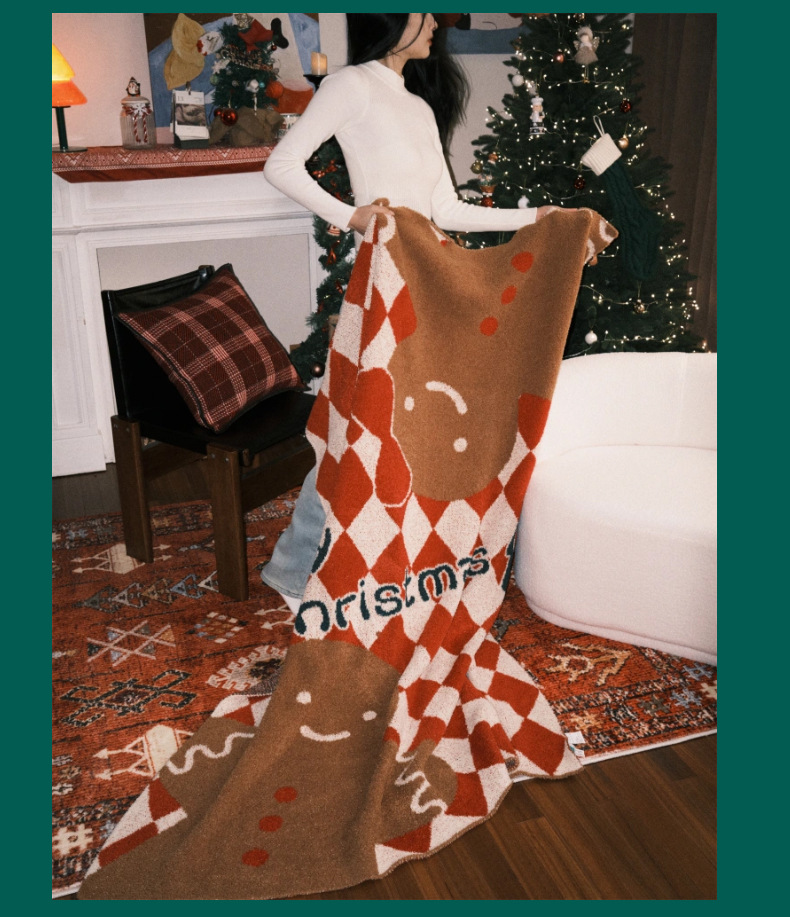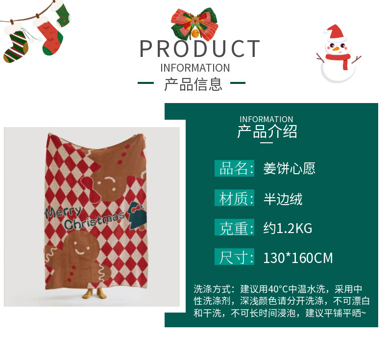 북유럽 새로운 크리스마스 진저 브레드 남자 니트 담요 휴일 장식 담요 홈 소파 담요 반쪽 벨벳 담요스토어 가기