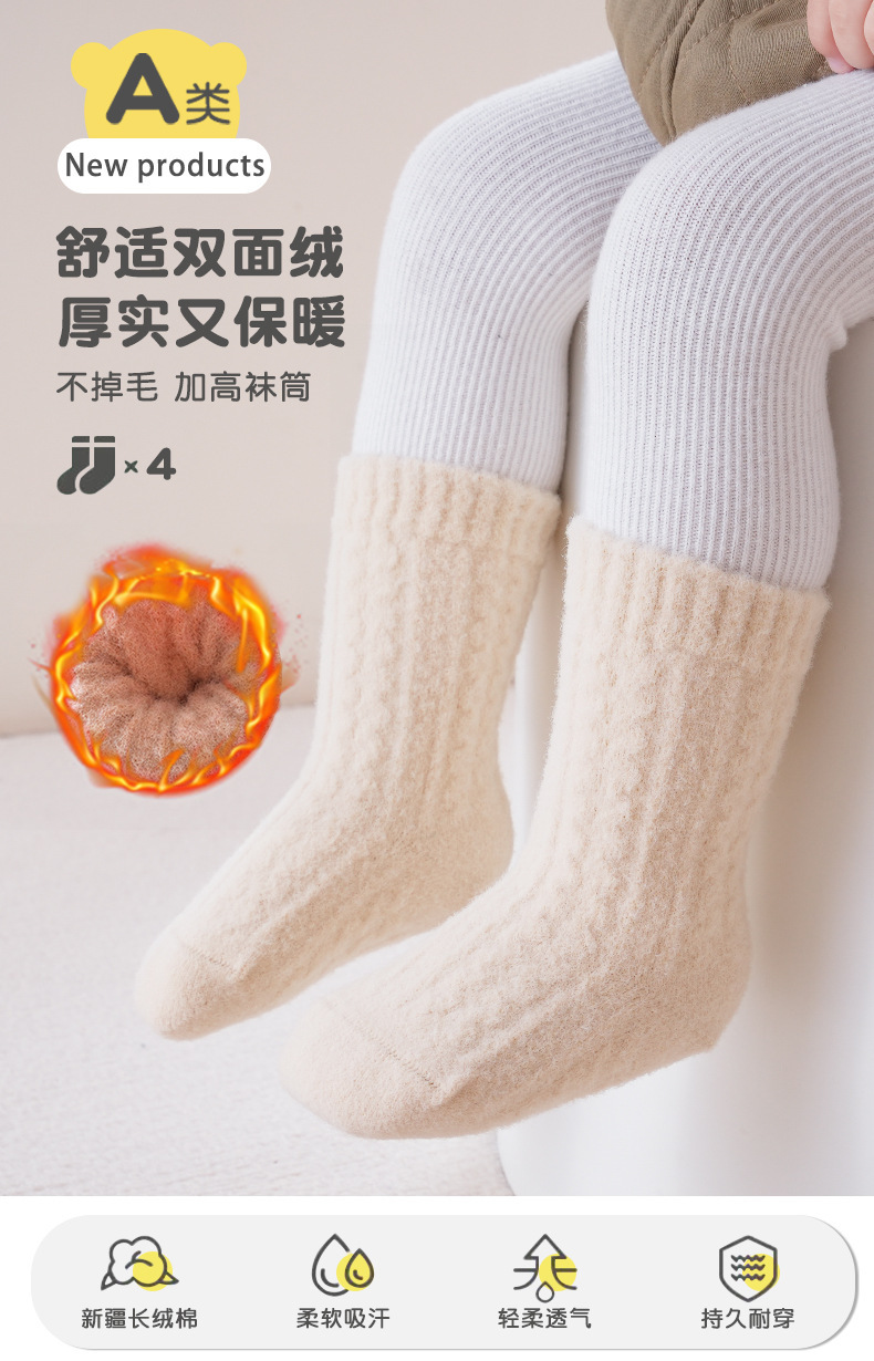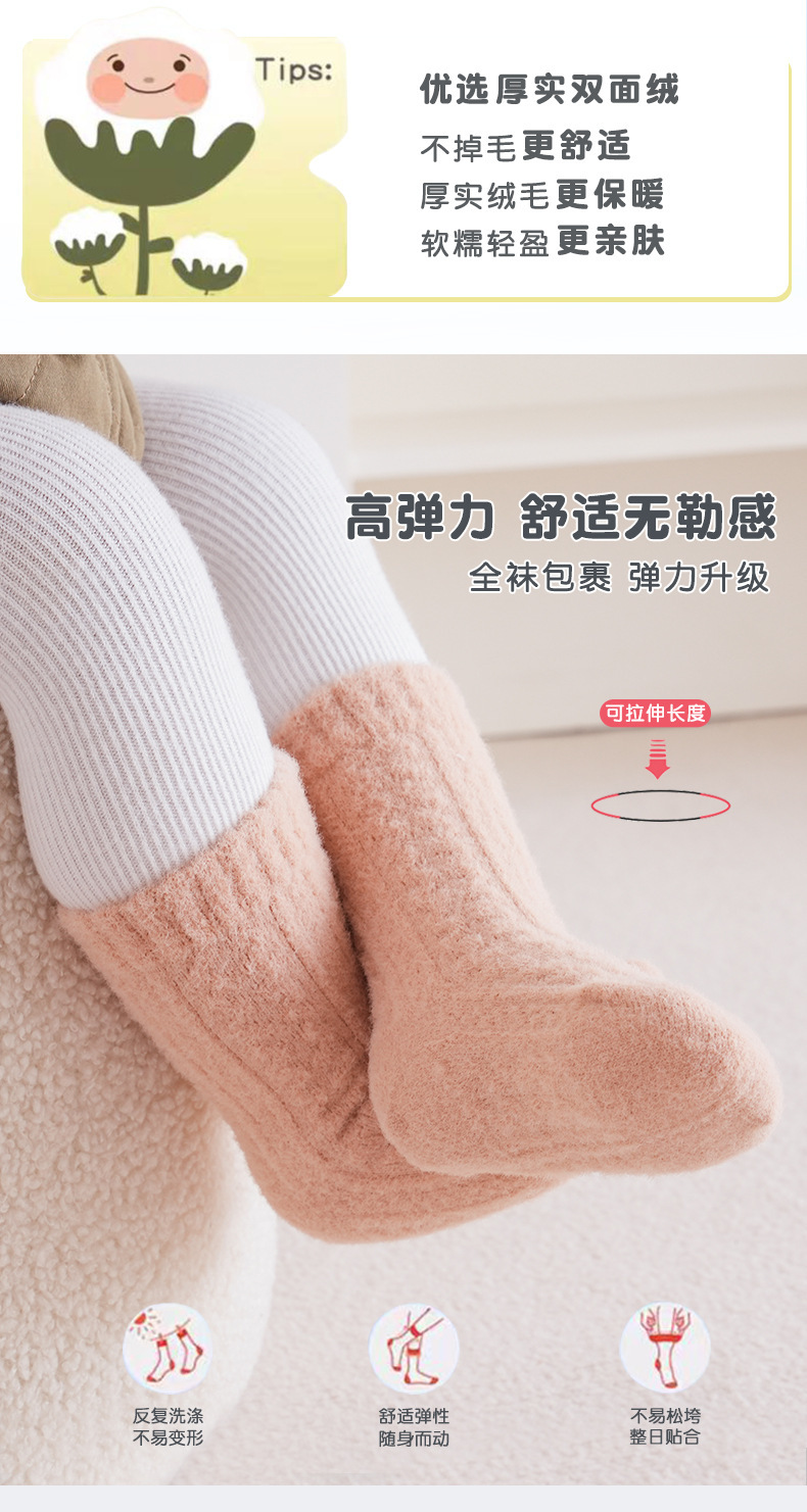 2024 가을과 겨울 새로운 두꺼운 기모 부드러운 아기 어린이 따뜻한 열 저장 스타킹