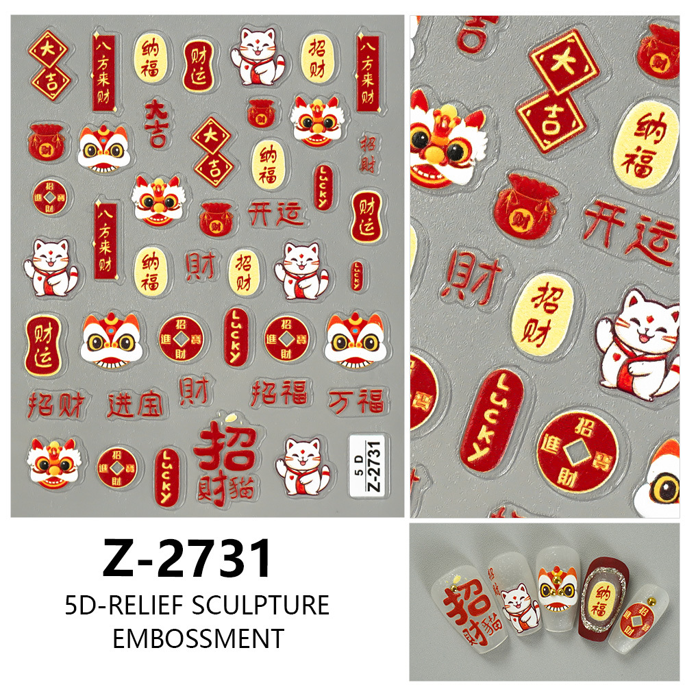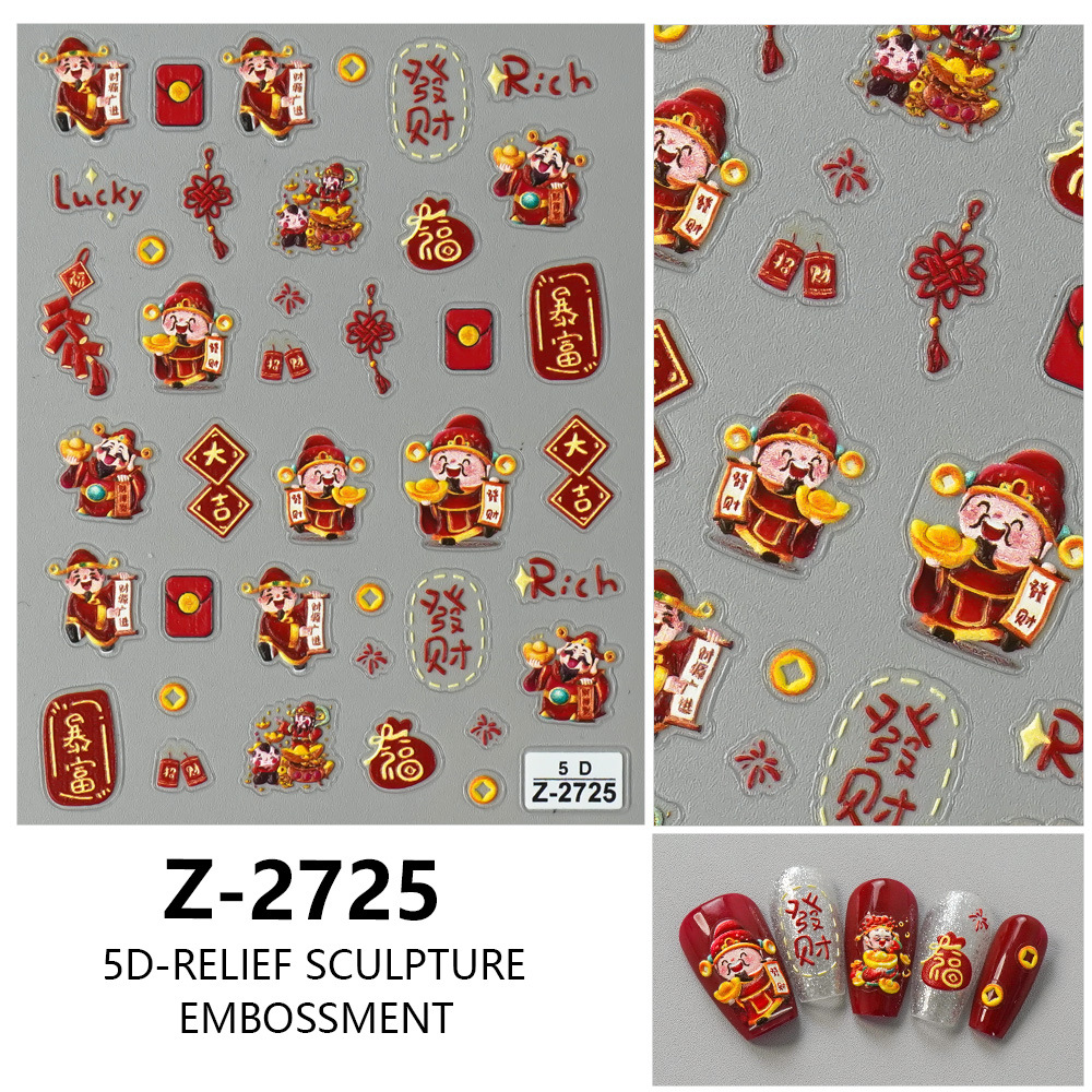 새로운 Redanco 5D 양각 스타일 새해 행운 부 매니큐어 스티커 스테레오 네일 스티커 Z-2727