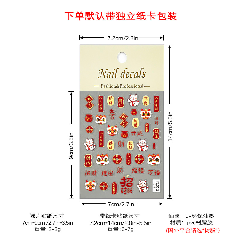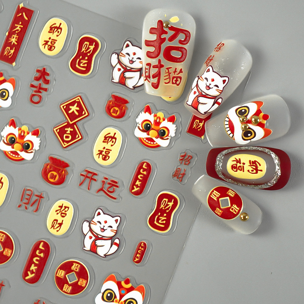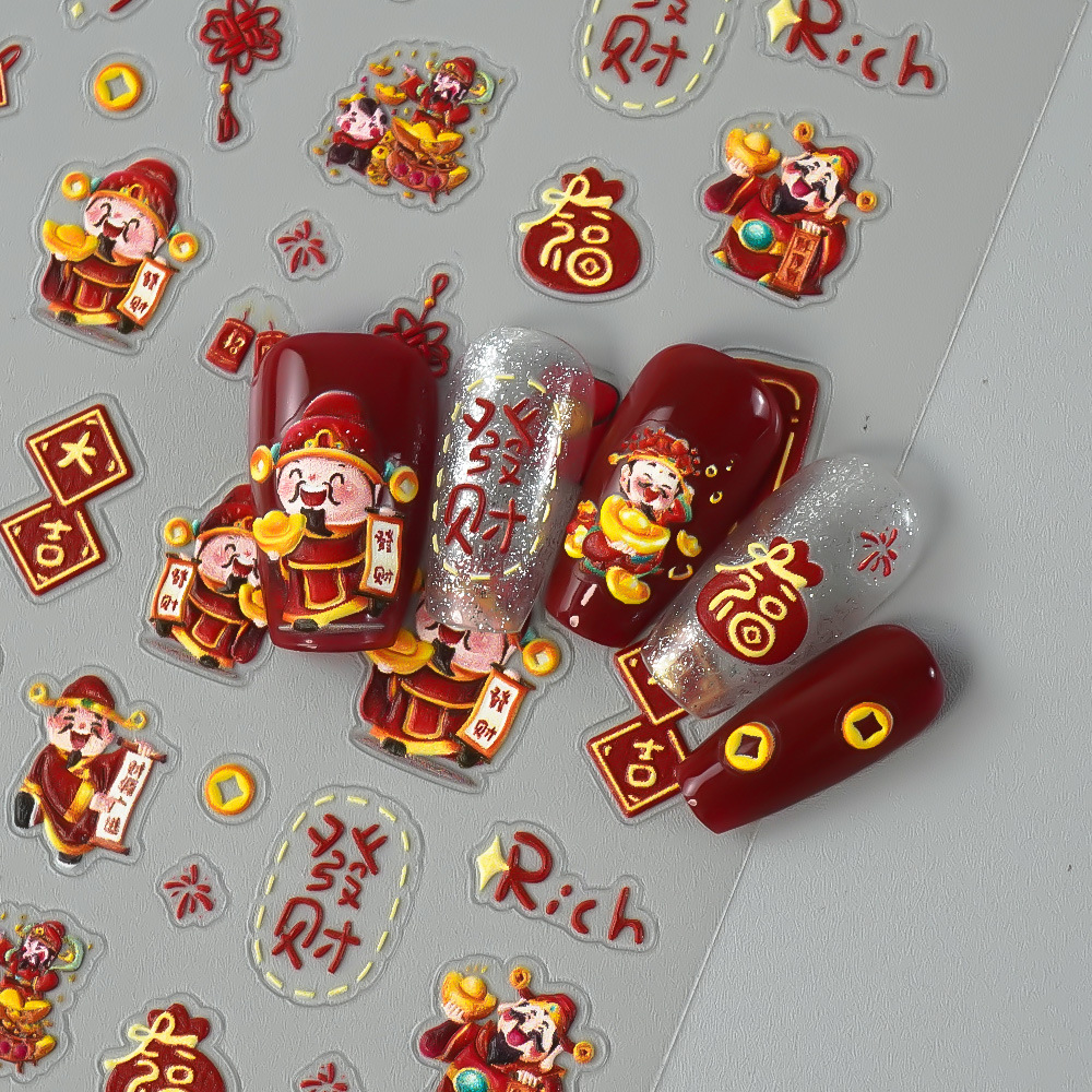 새로운 Redanco 5D 양각 스타일 새해 행운 부 매니큐어 스티커 스테레오 네일 스티커 Z-2727스토어 가기