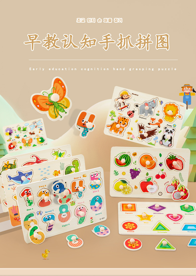 국경을 넘는 유아용 퍼즐 나무 조기교육 지능 퍼즐판 교육용 나무 못잡기판 동물 과일 나무 장난감스토어 가기