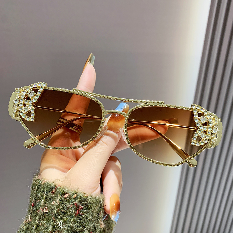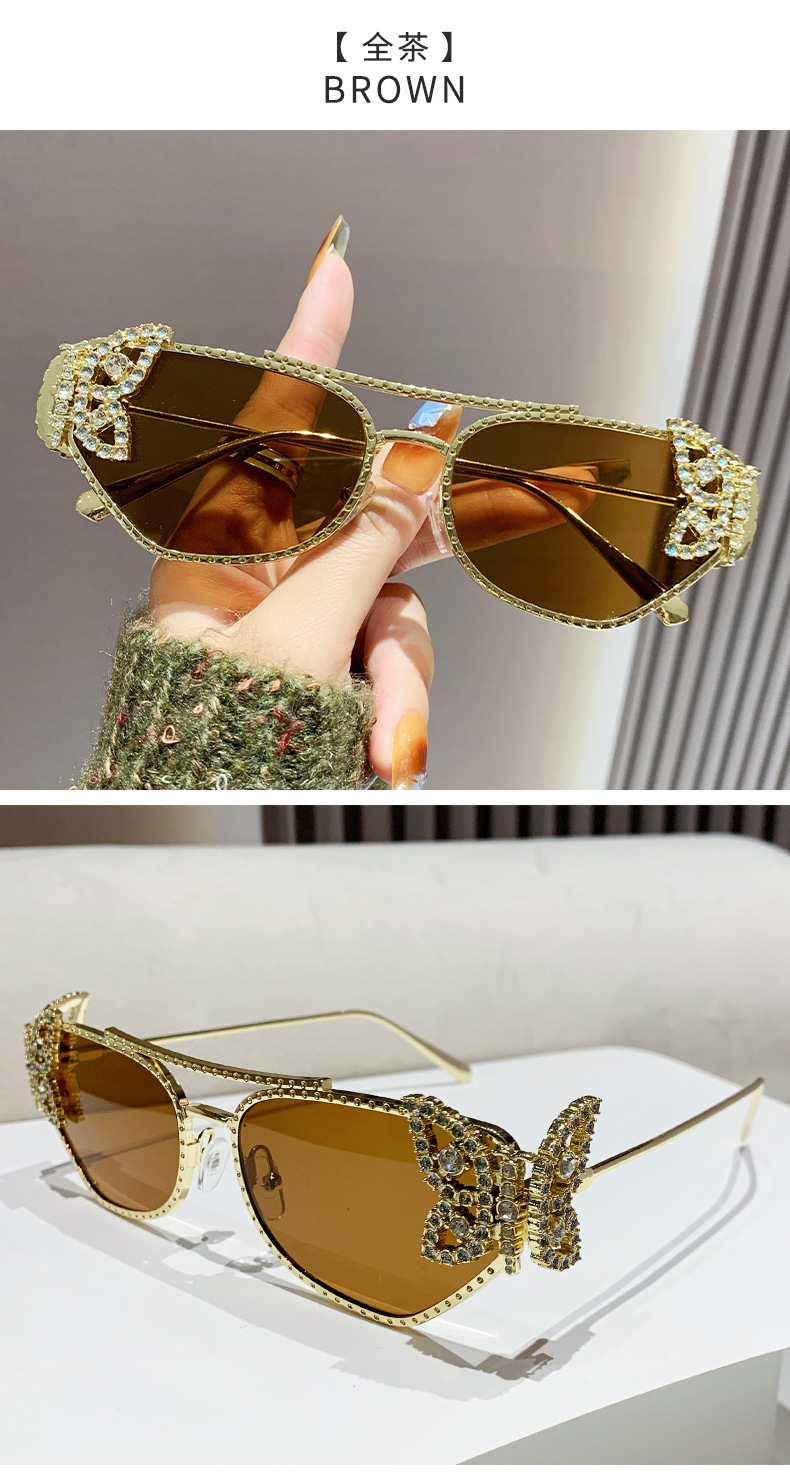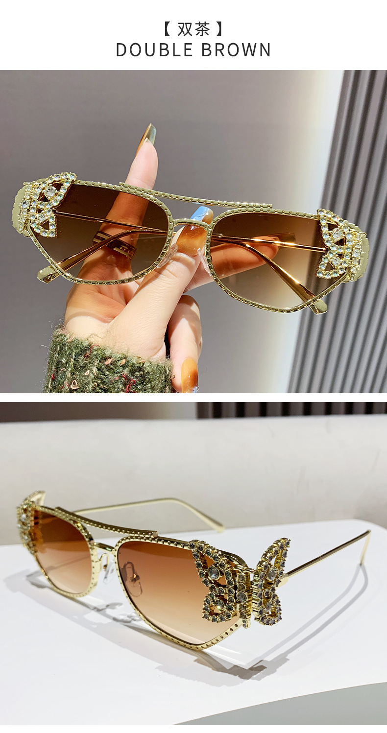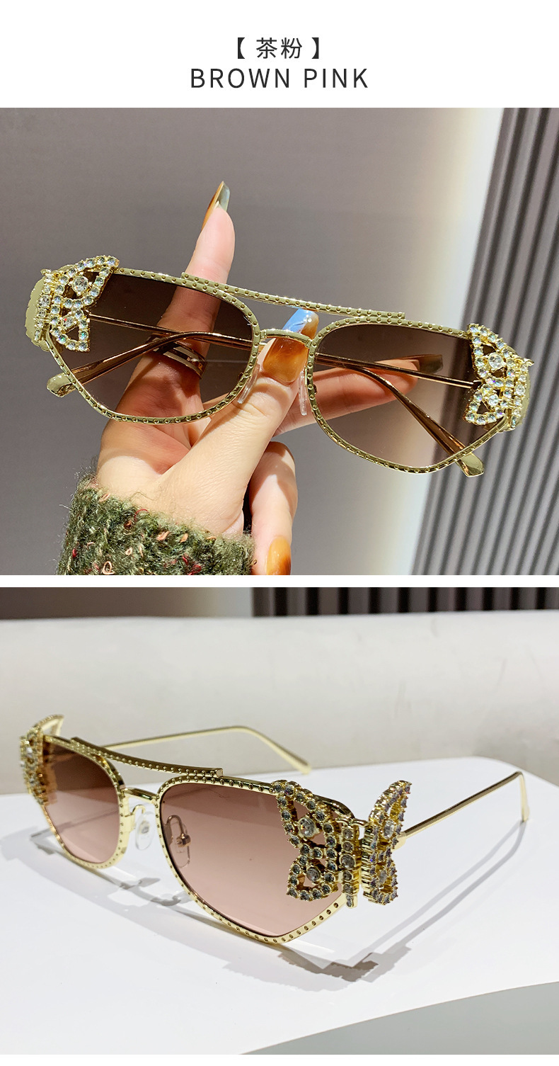 새로운 더블 빔 안경 나비 장식 디자인 선글라스 여성 다이아몬드 폴리곤 국경 유럽 및 미국 금속 선글라스스토어 가기