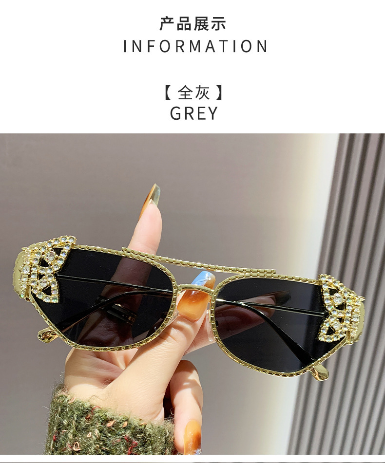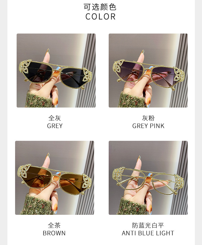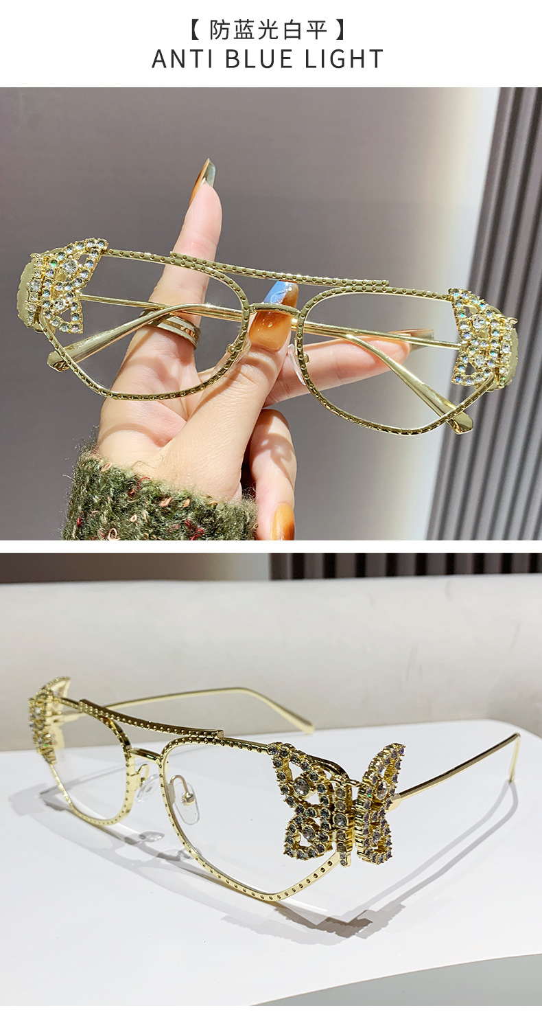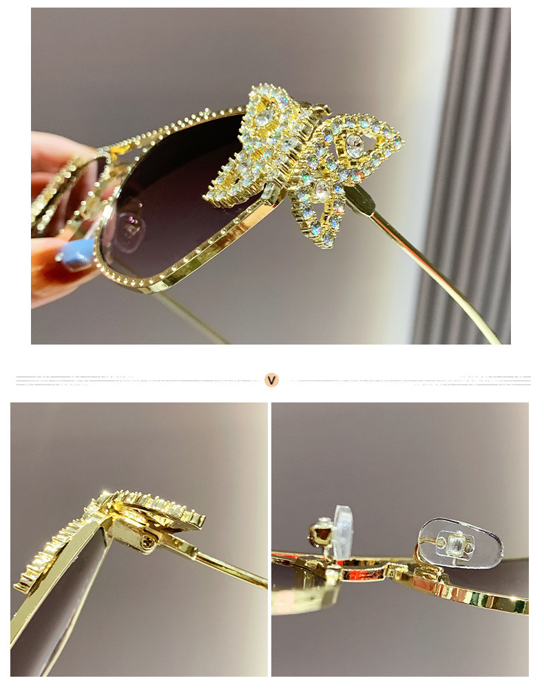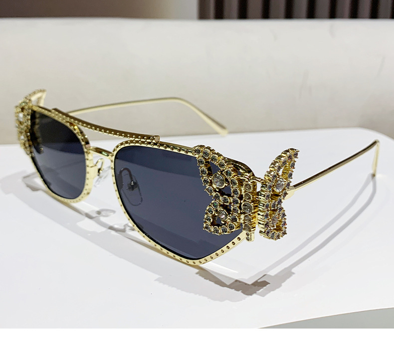 새로운 더블 빔 안경 나비 장식 디자인 선글라스 여성 다이아몬드 폴리곤 국경 유럽 및 미국 금속 선글라스스토어 가기