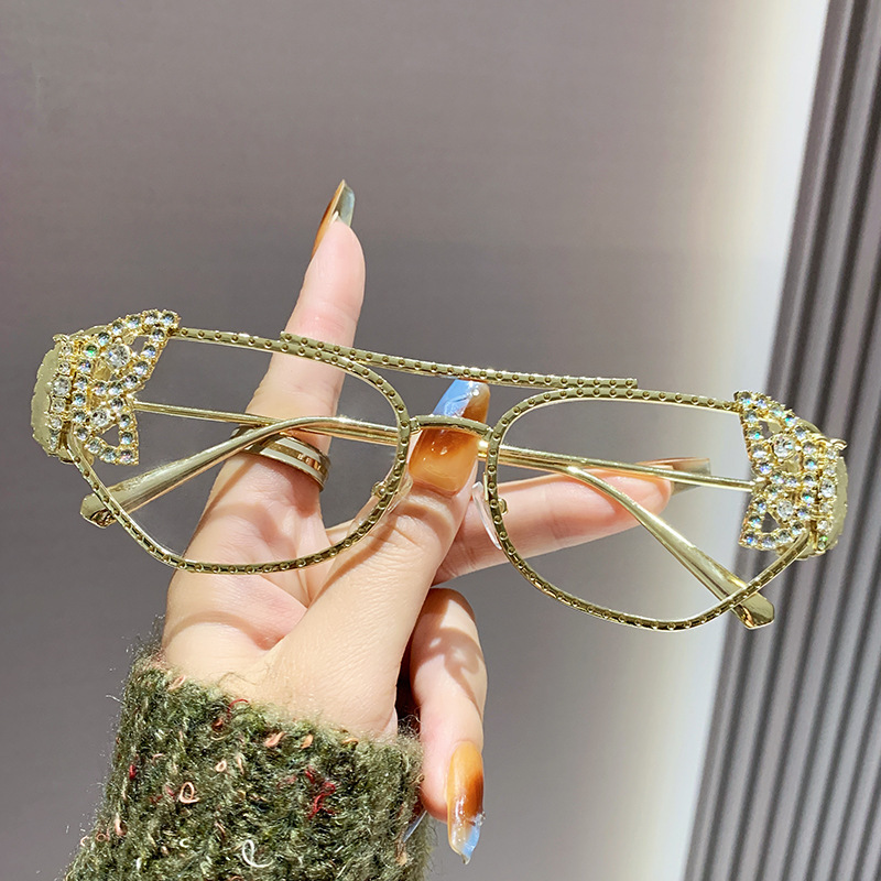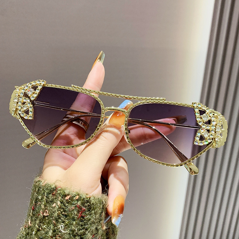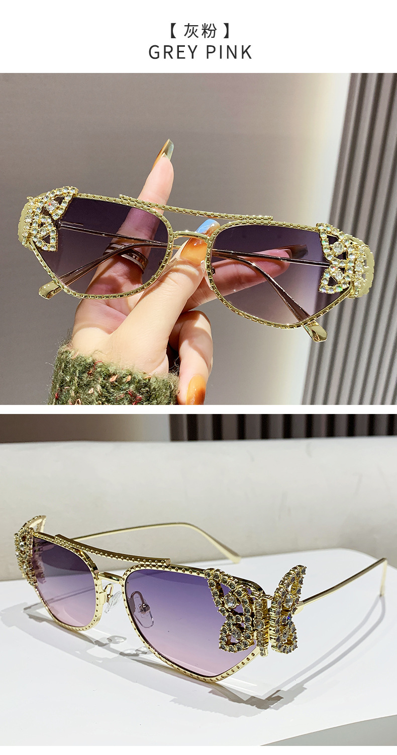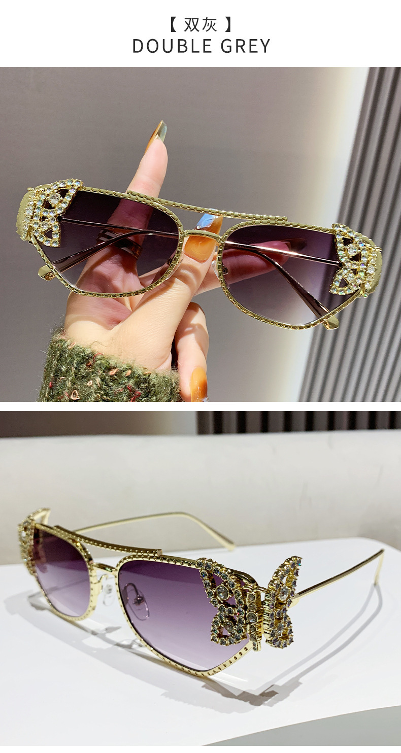 새로운 더블 빔 안경 나비 장식 디자인 선글라스 여성 다이아몬드 폴리곤 국경 유럽 및 미국 금속 선글라스
