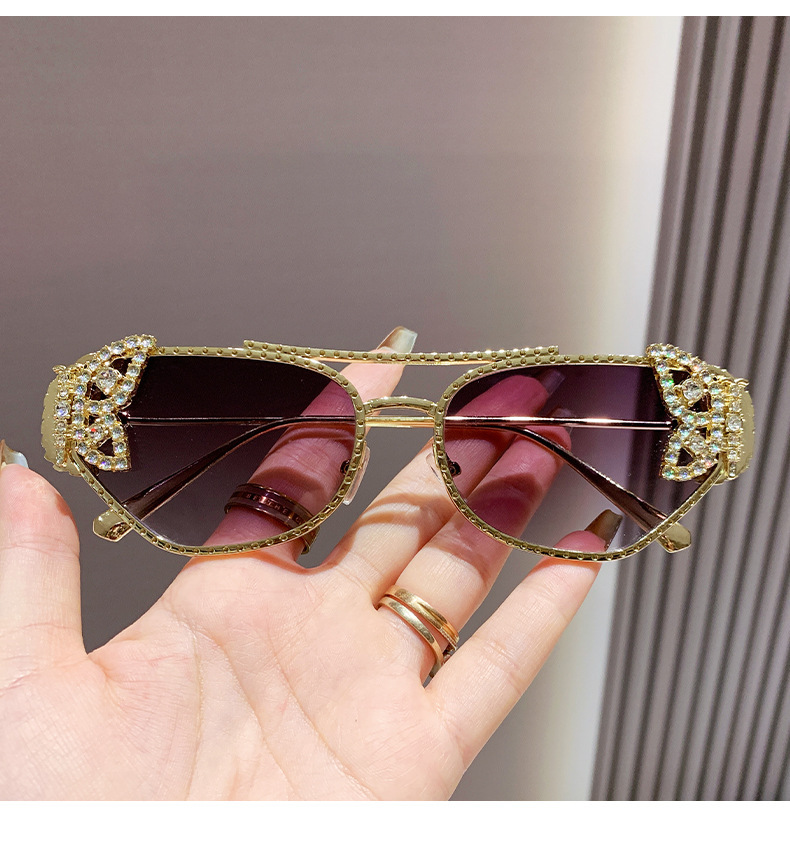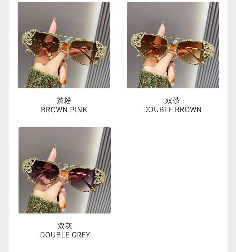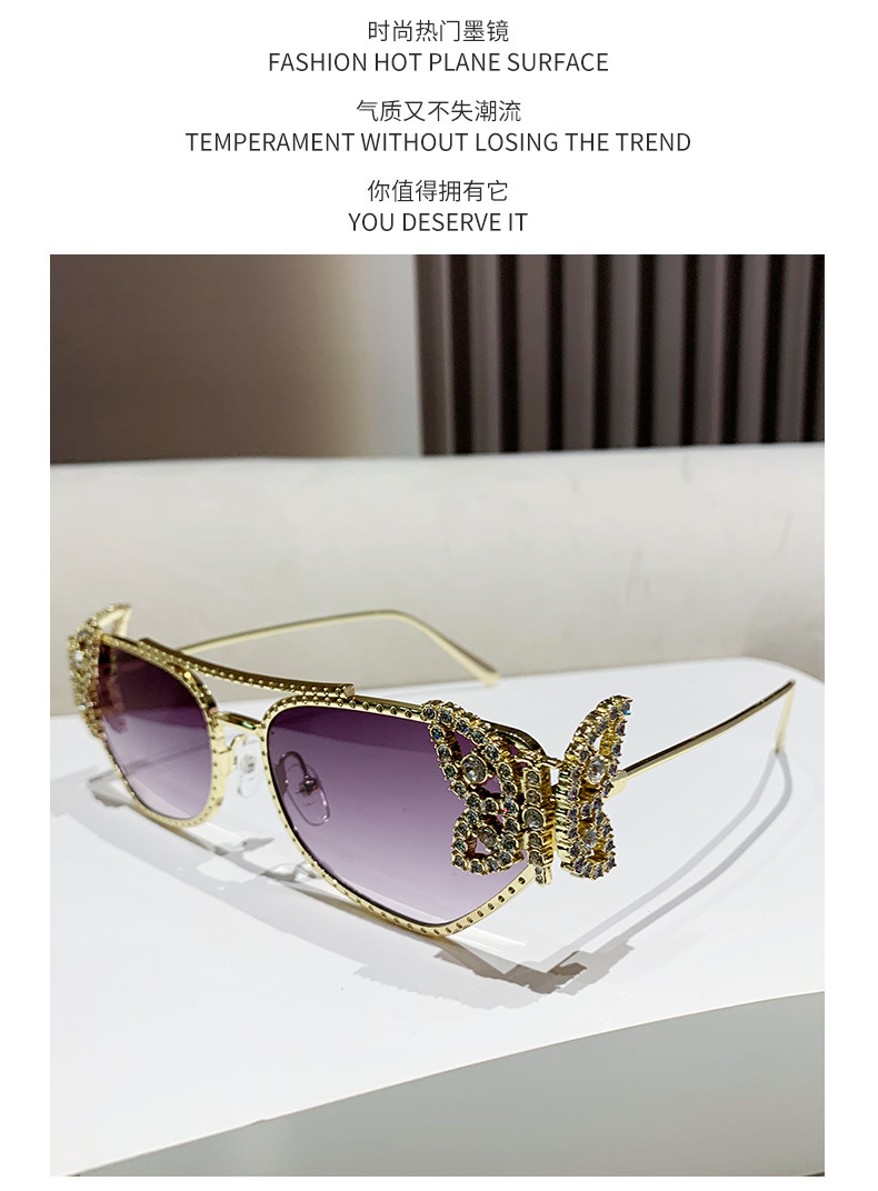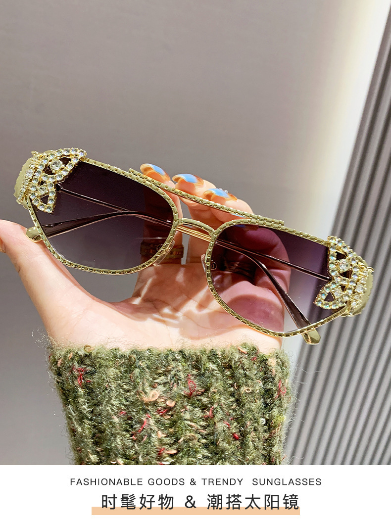 새로운 더블 빔 안경 나비 장식 디자인 선글라스 여성 다이아몬드 폴리곤 국경 유럽 및 미국 금속 선글라스