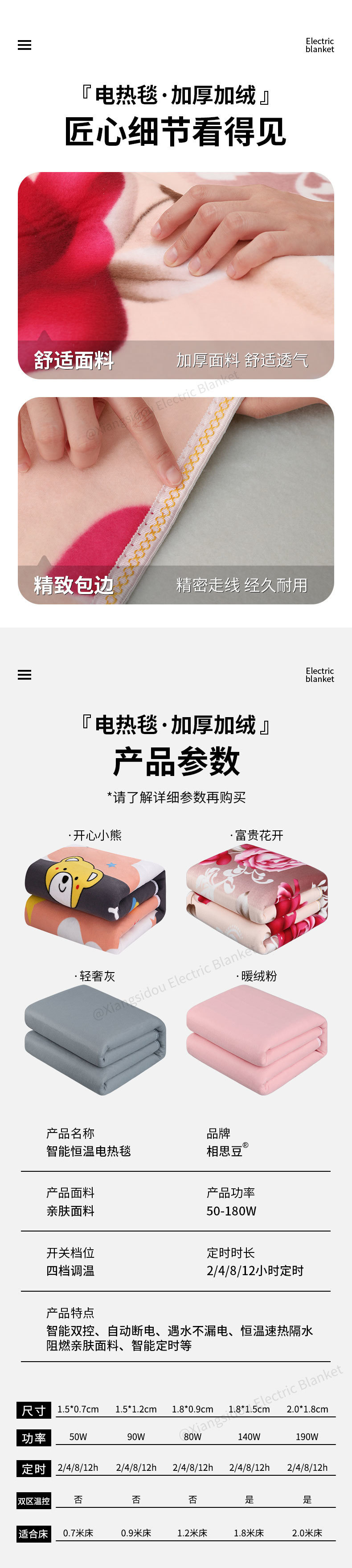 아카시아 콩 전기 담요 두 배 두 배 제어 온도 제어 두꺼운 증가 지능형 가정용 전기 진드기 단일 진드기 제거스토어 가기