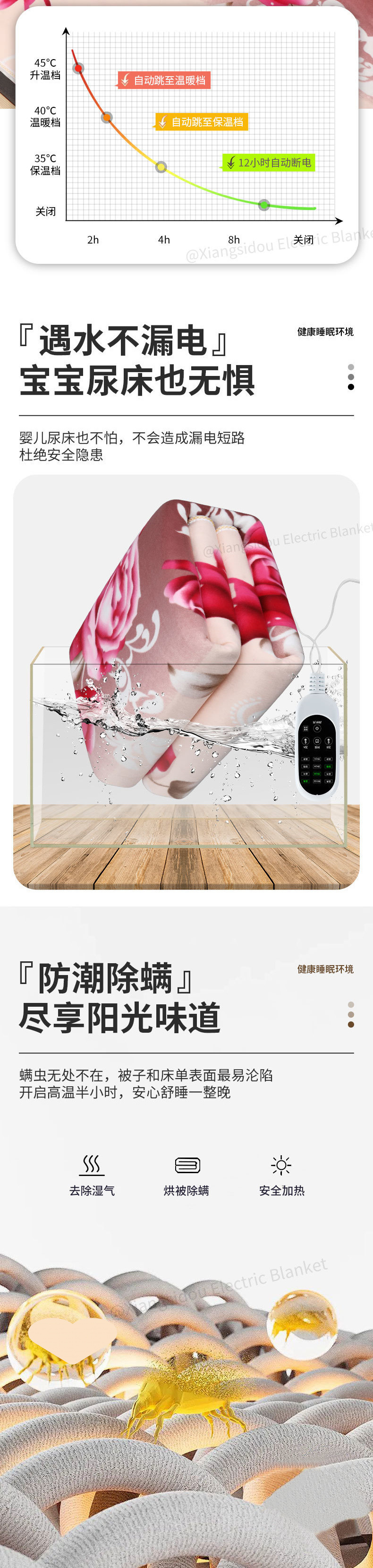아카시아 콩 전기 담요 두 배 두 배 제어 온도 제어 두꺼운 증가 지능형 가정용 전기 진드기 단일 진드기 제거