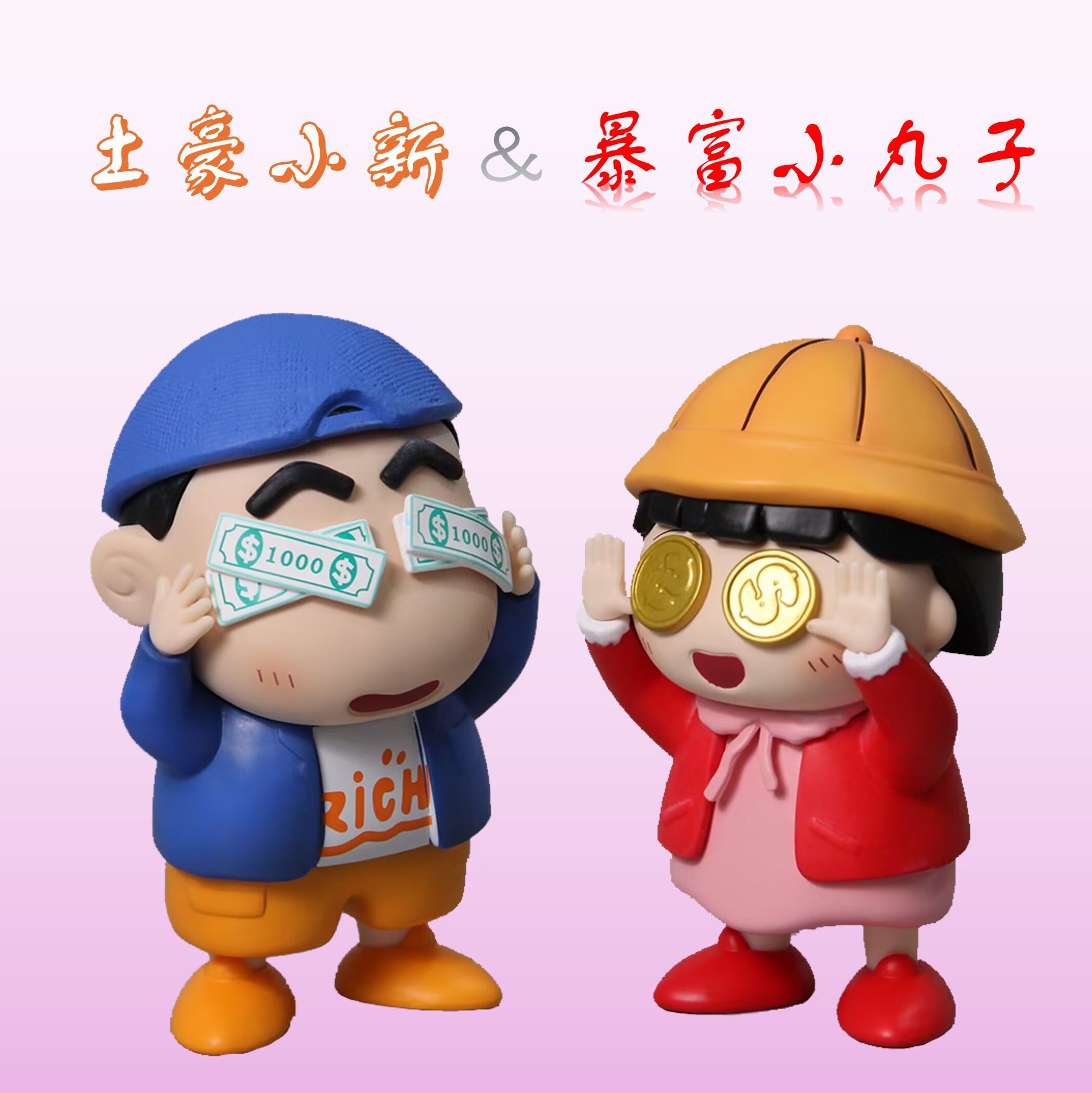 • 土豪小新与暴富小丸子发财创意可爱公仔手办模型桌面周边摆件批发