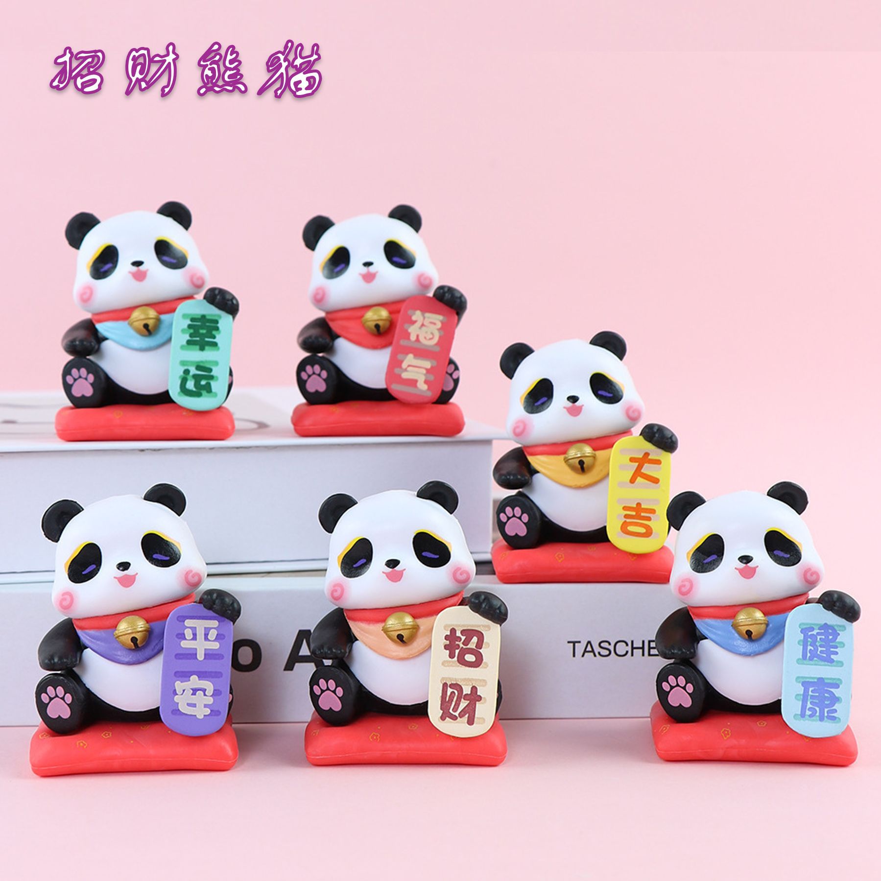 • 6款可爱熊猫手办盲盒卡通国潮创意玩具桌面机箱周边车载摆件批发