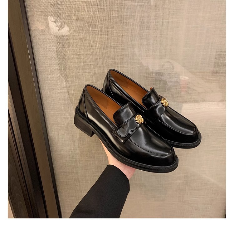 2024 가을과 겨울 두꺼운 싱글 레이어 신발을 가진 포도 엄마 기모 가죽 1 단계 두꺼운 발 뒤꿈치 lefu 작은 가죽 신발