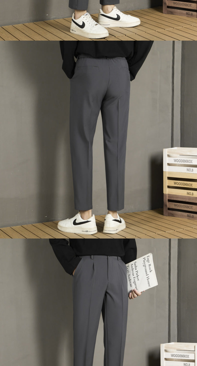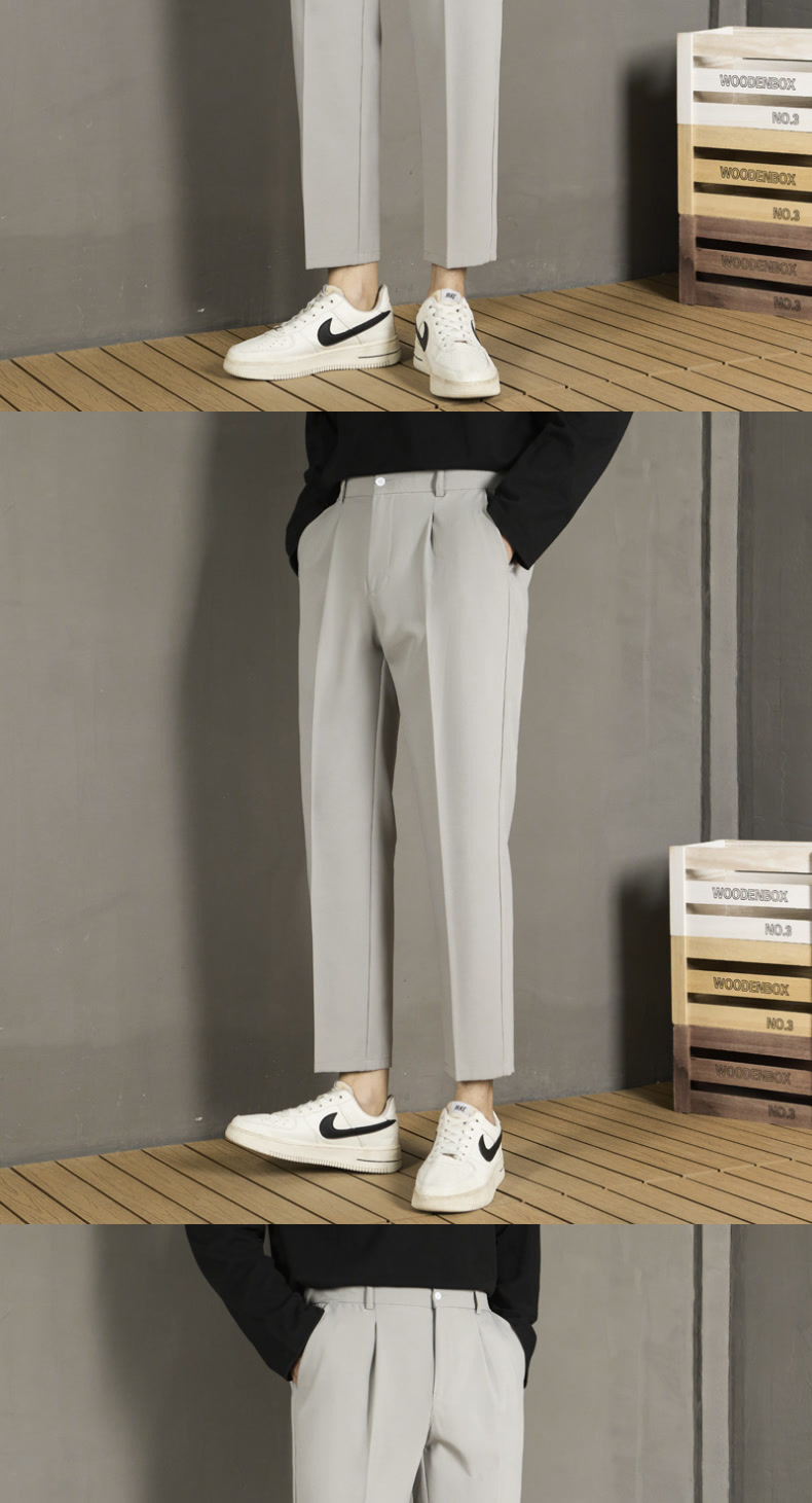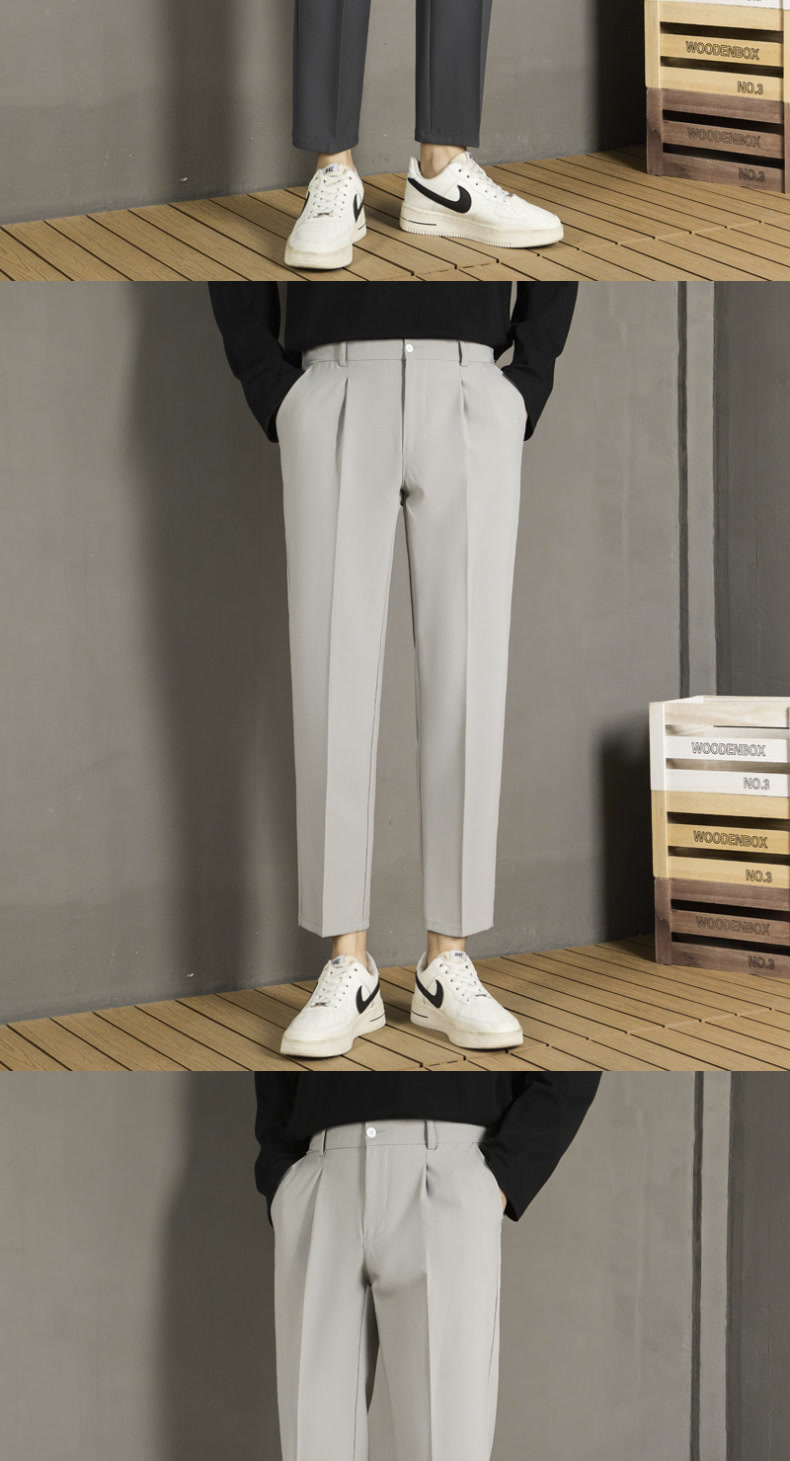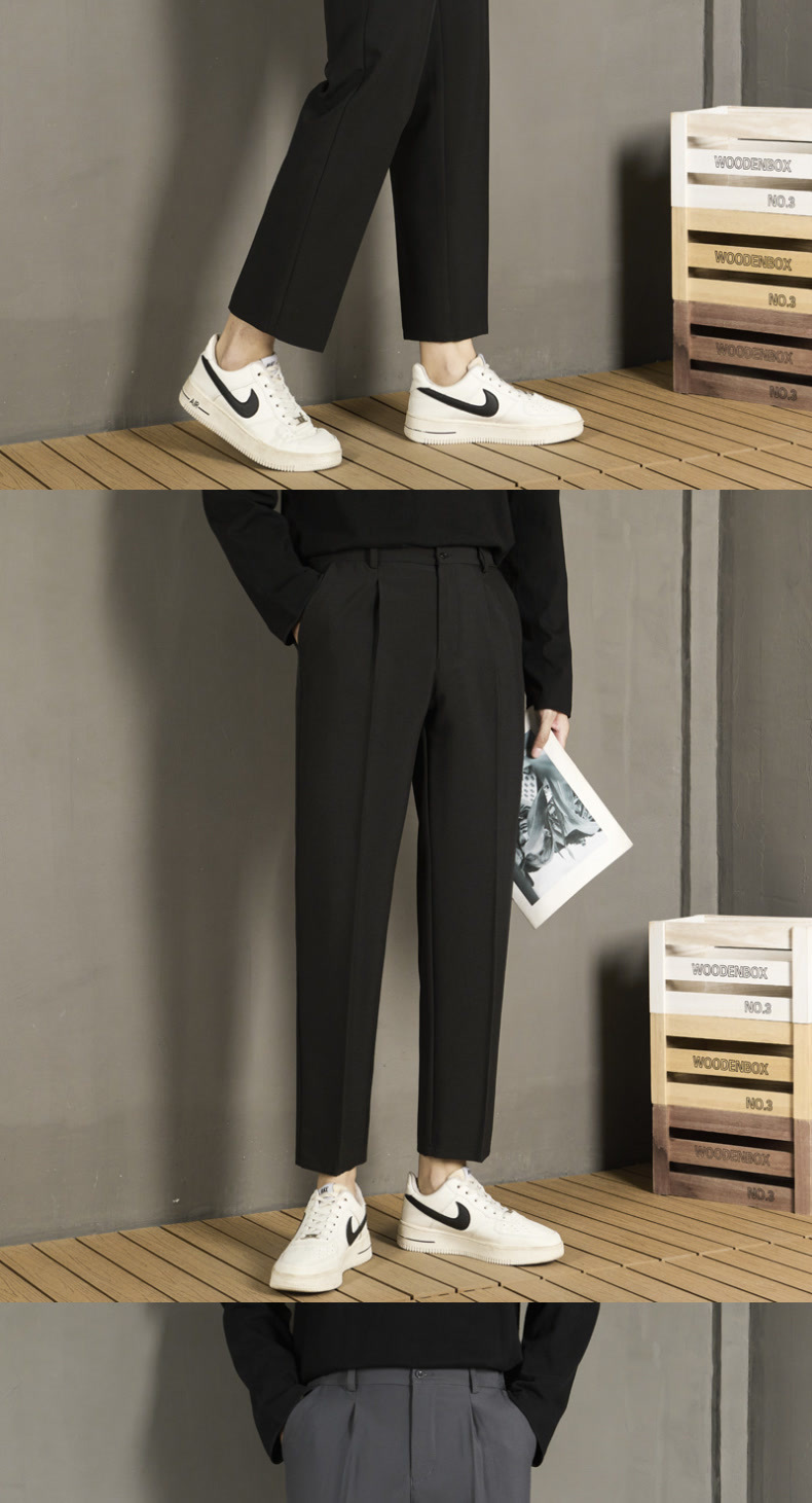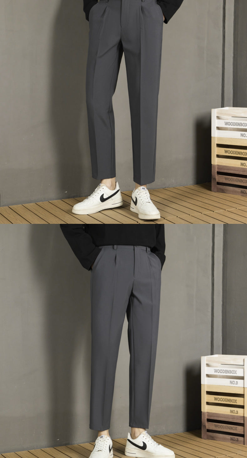 남자 캐주얼 바지 가을 스트레이트 슬림 핏 발 자른 바지 2024 새로운 스타일 새그 긴 바지 봄과 가을스토어 가기