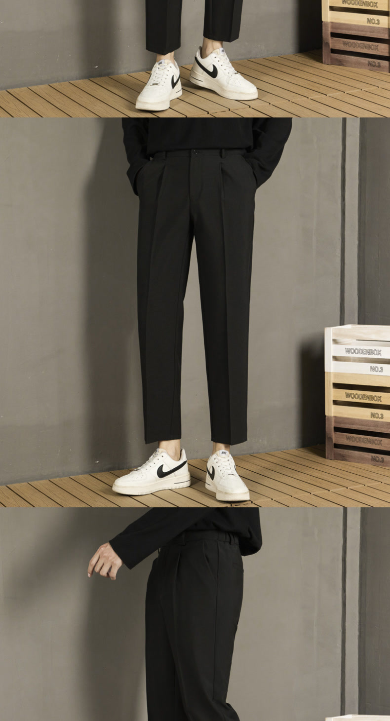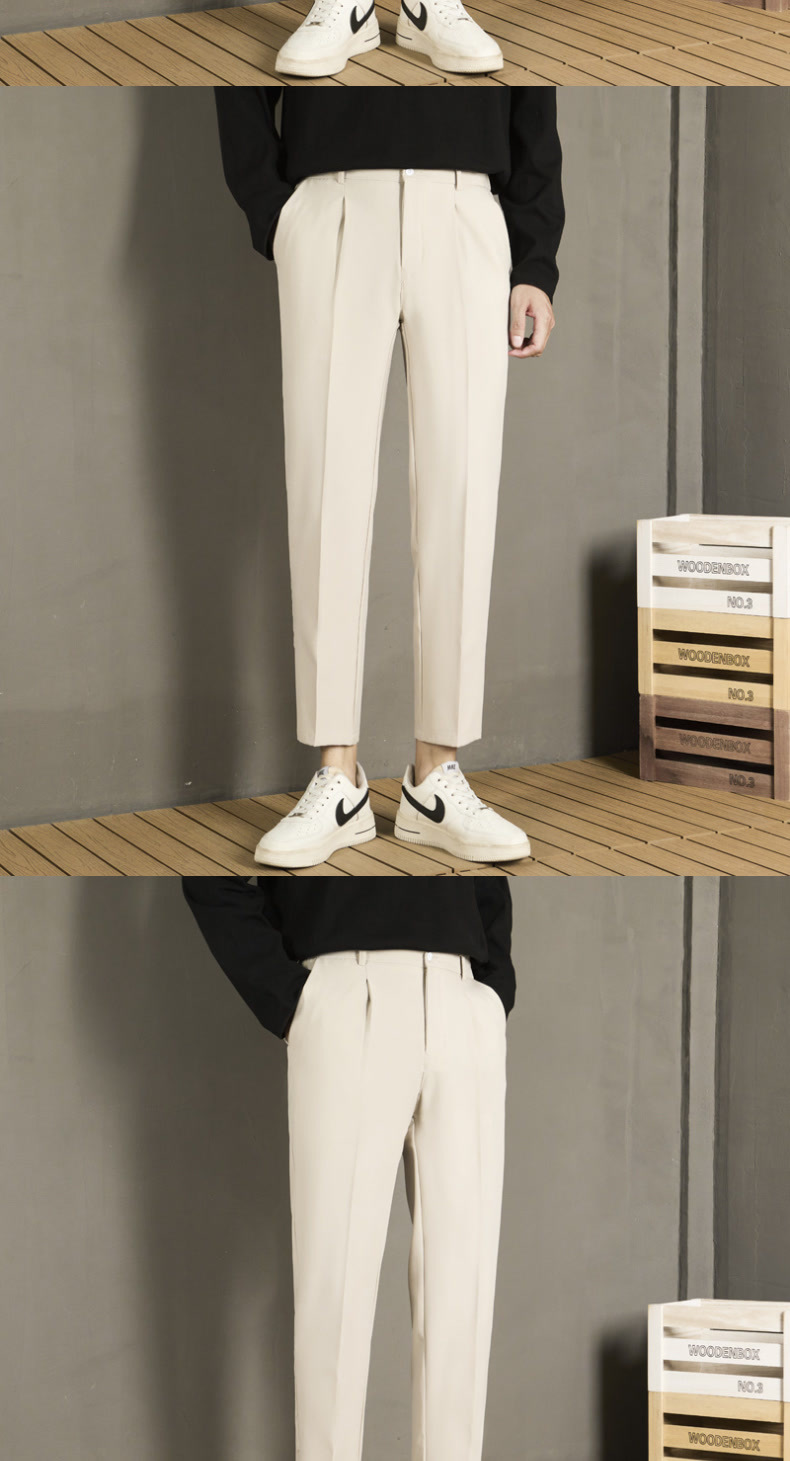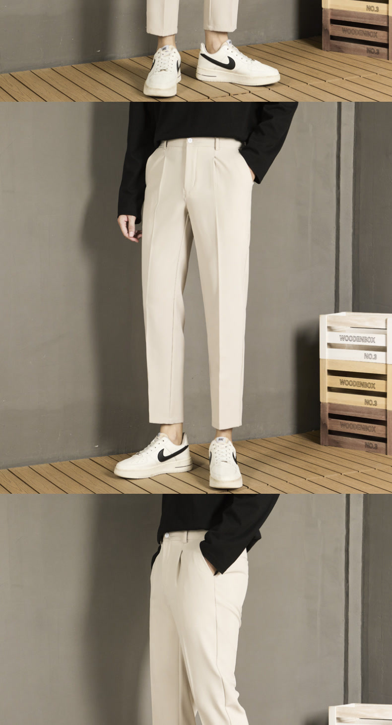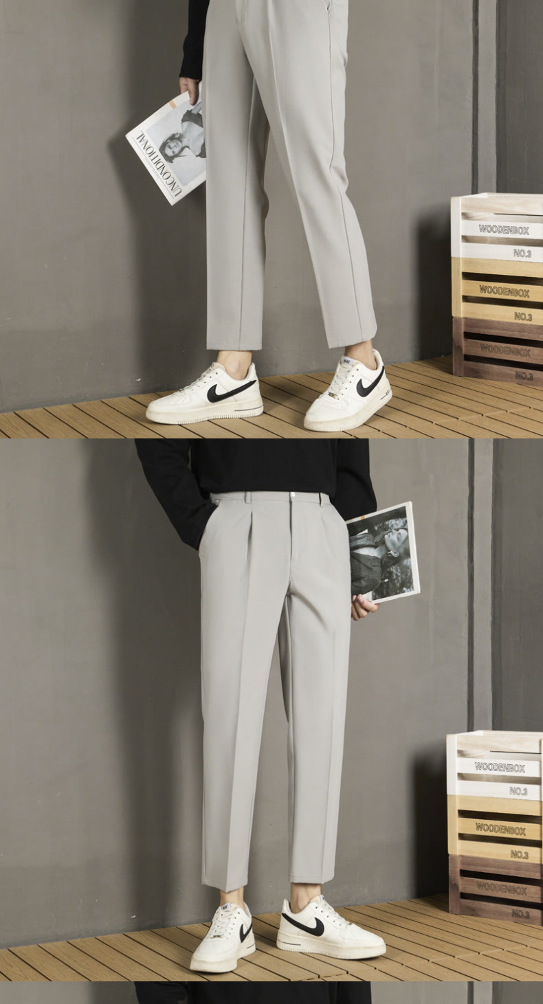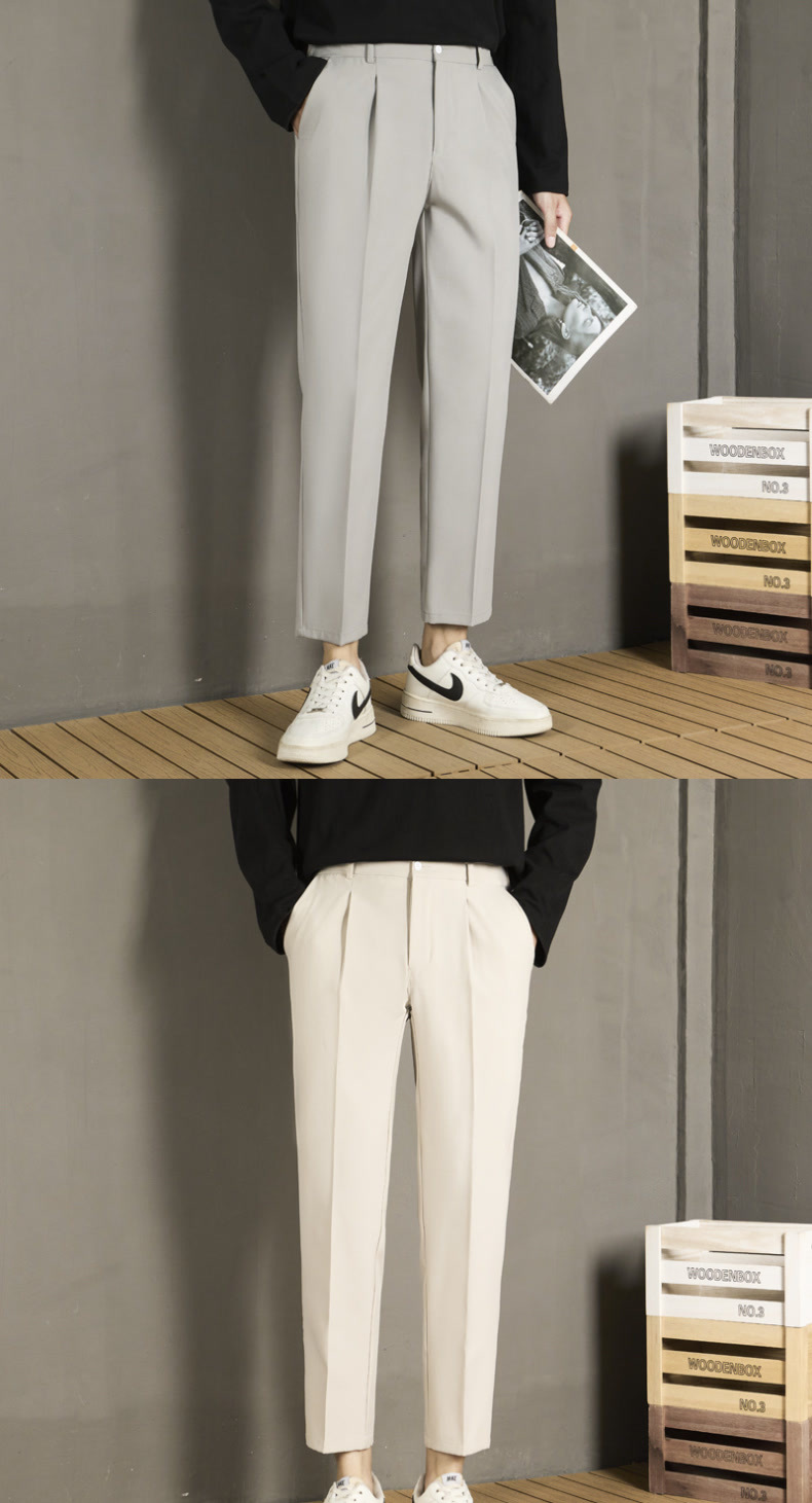 남자 캐주얼 바지 가을 스트레이트 슬림 핏 발 자른 바지 2024 새로운 스타일 새그 긴 바지 봄과 가을스토어 가기