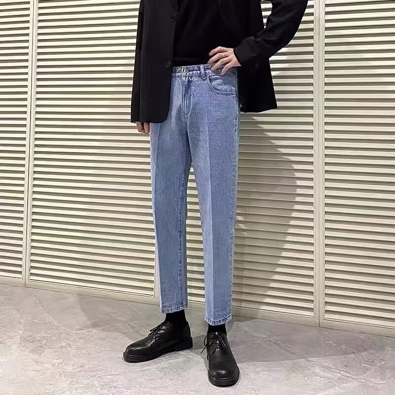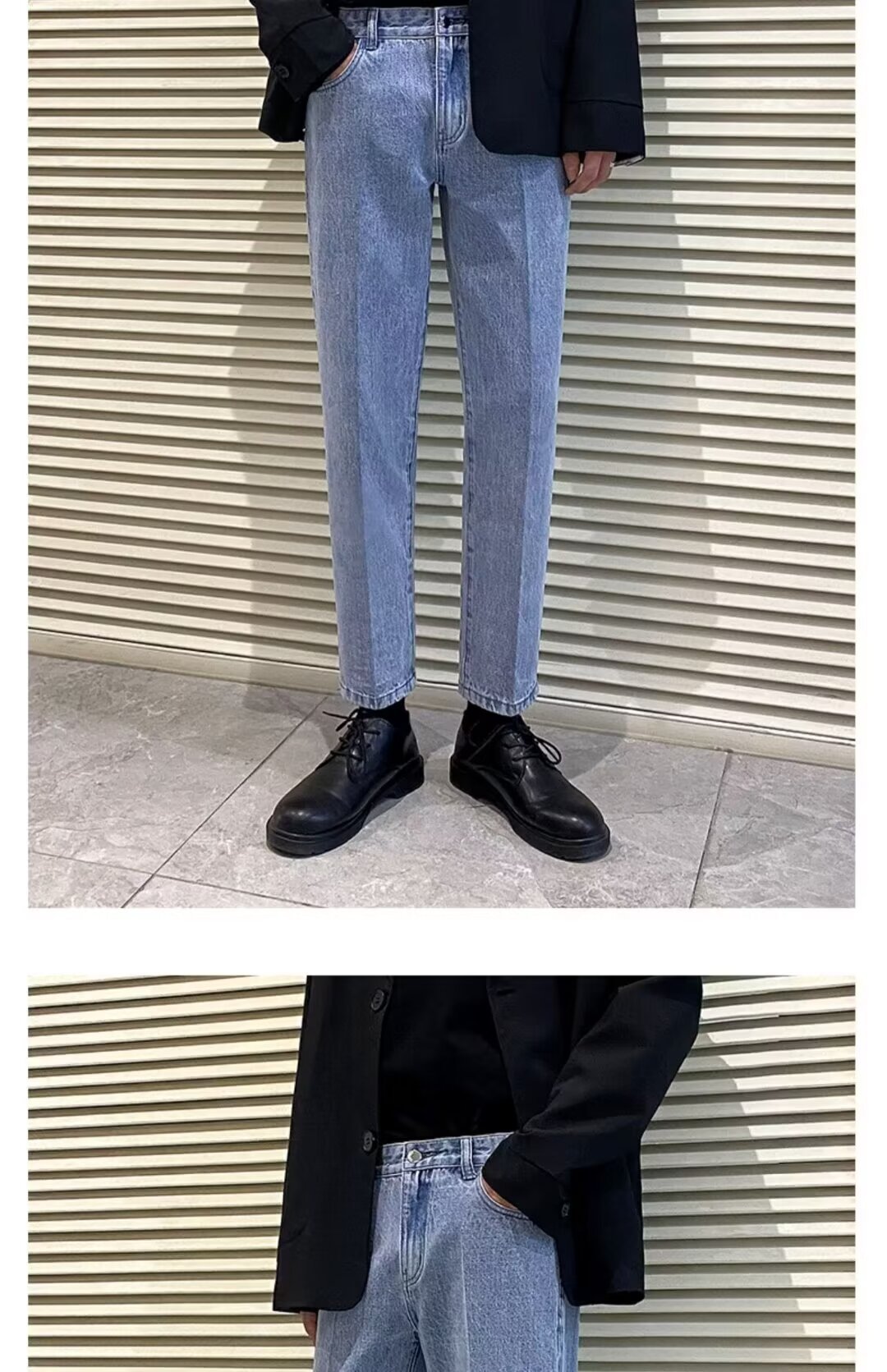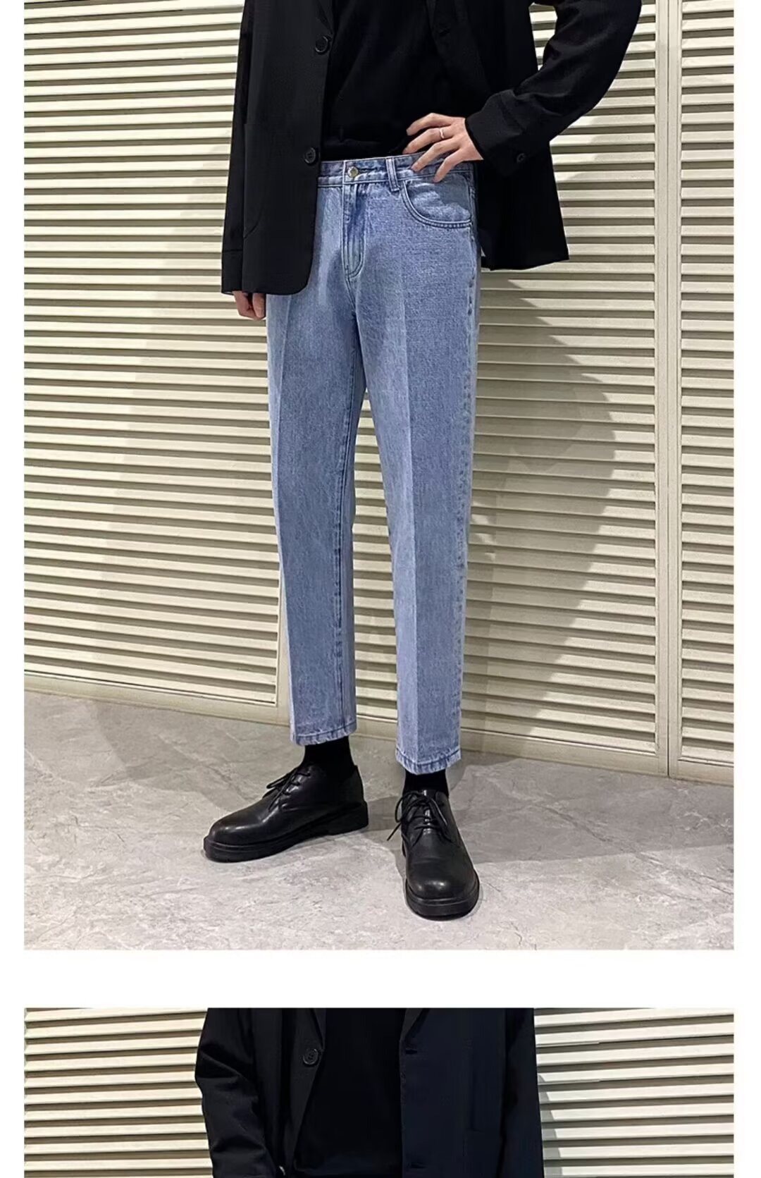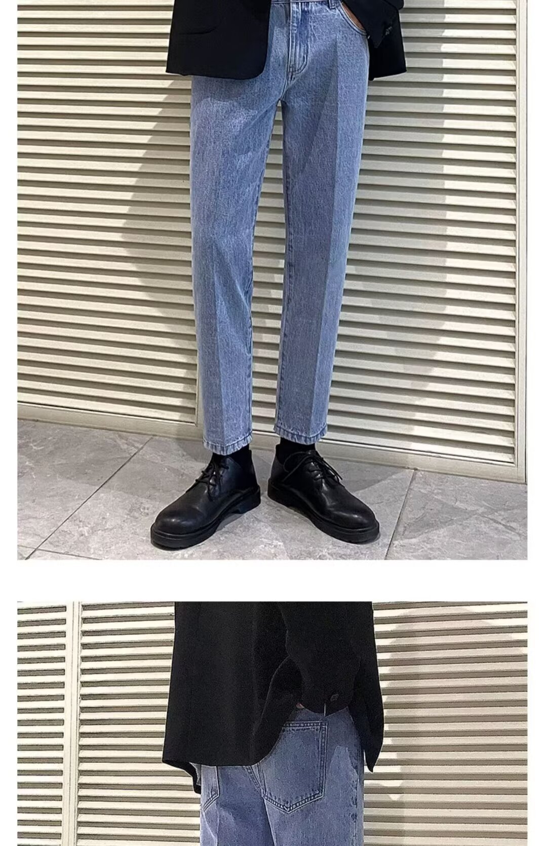 스트레이트 레그 청바지 남자 레트로 블루 봄과 여름 캐주얼 올 매치 와이드 레그 발목 길이 바지 한국 유행 느슨한 발목 길이 바지스토어 가기