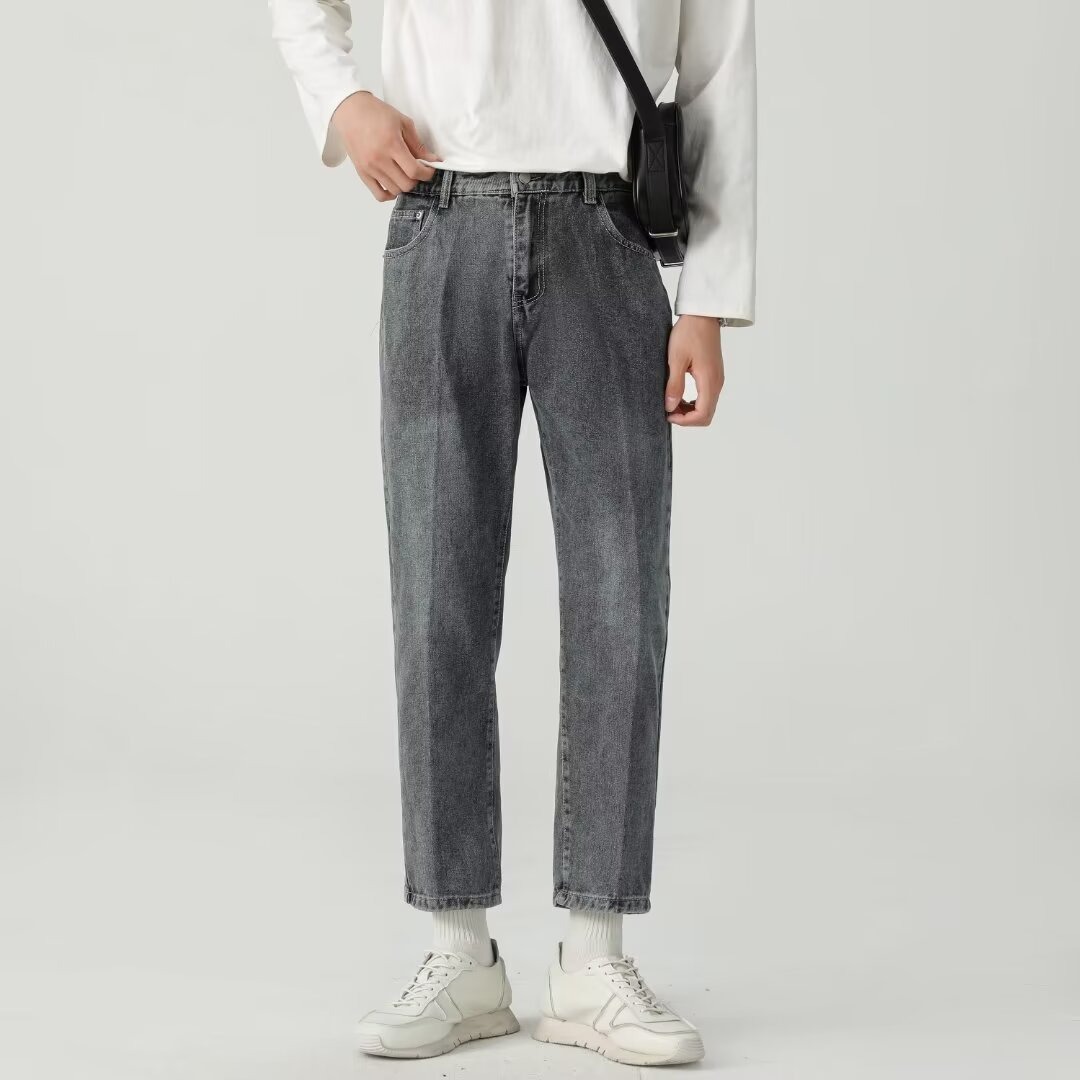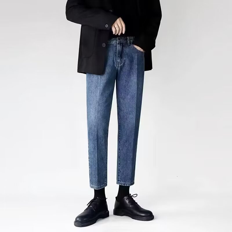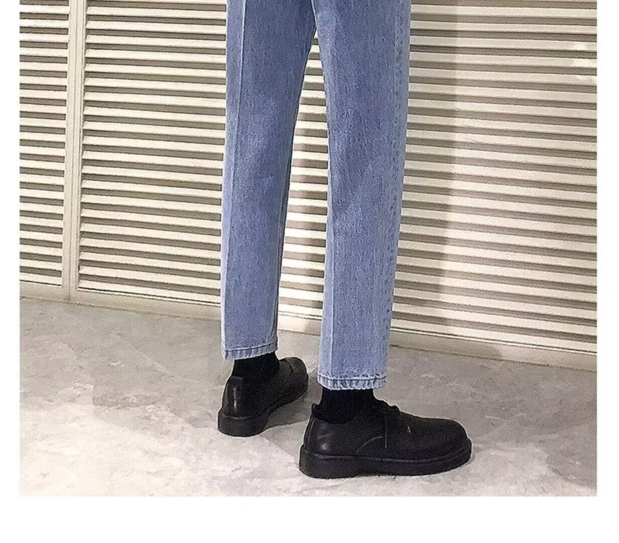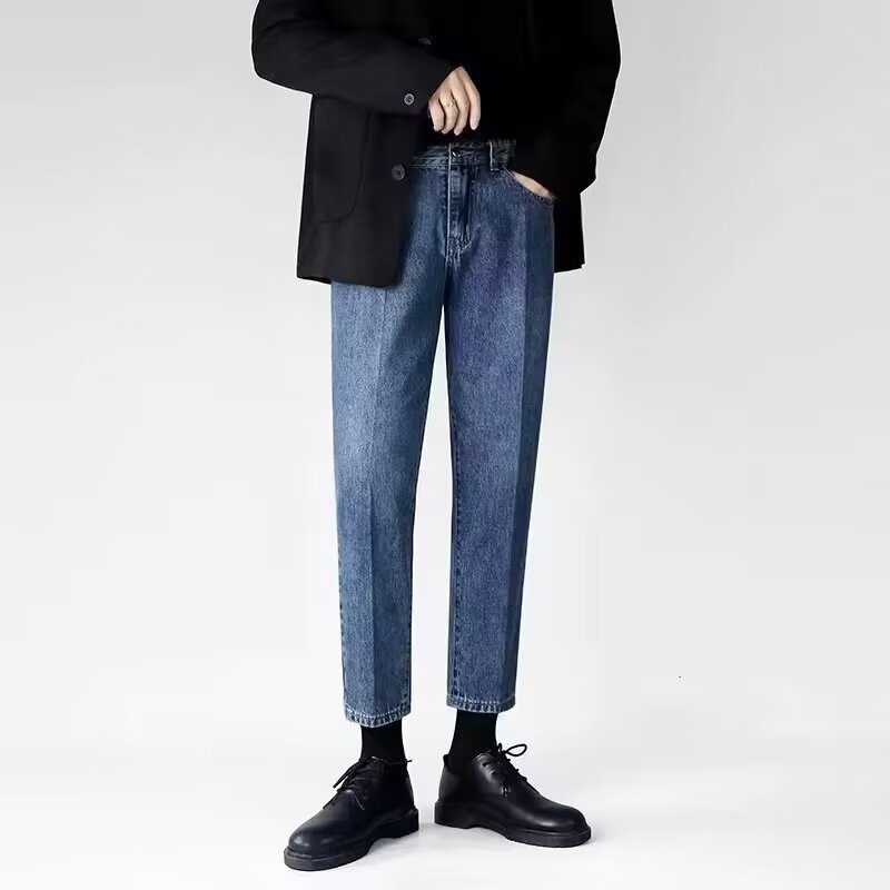 스트레이트 레그 청바지 남자 레트로 블루 봄과 여름 캐주얼 올 매치 와이드 레그 발목 길이 바지 한국 유행 느슨한 발목 길이 바지스토어 가기