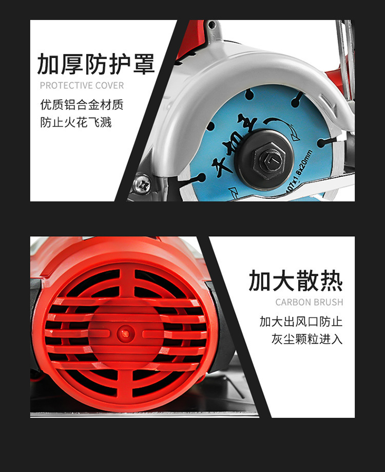 • 4900W 대리석 기계 + 목재 톱날 + 돌 + 금속 + 플라스틱 톱날 + 카본 브러쉬