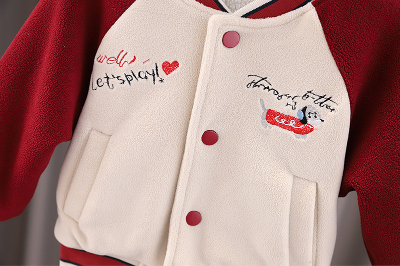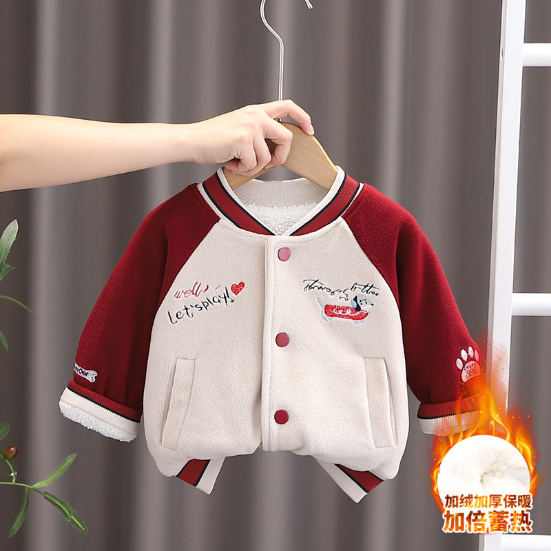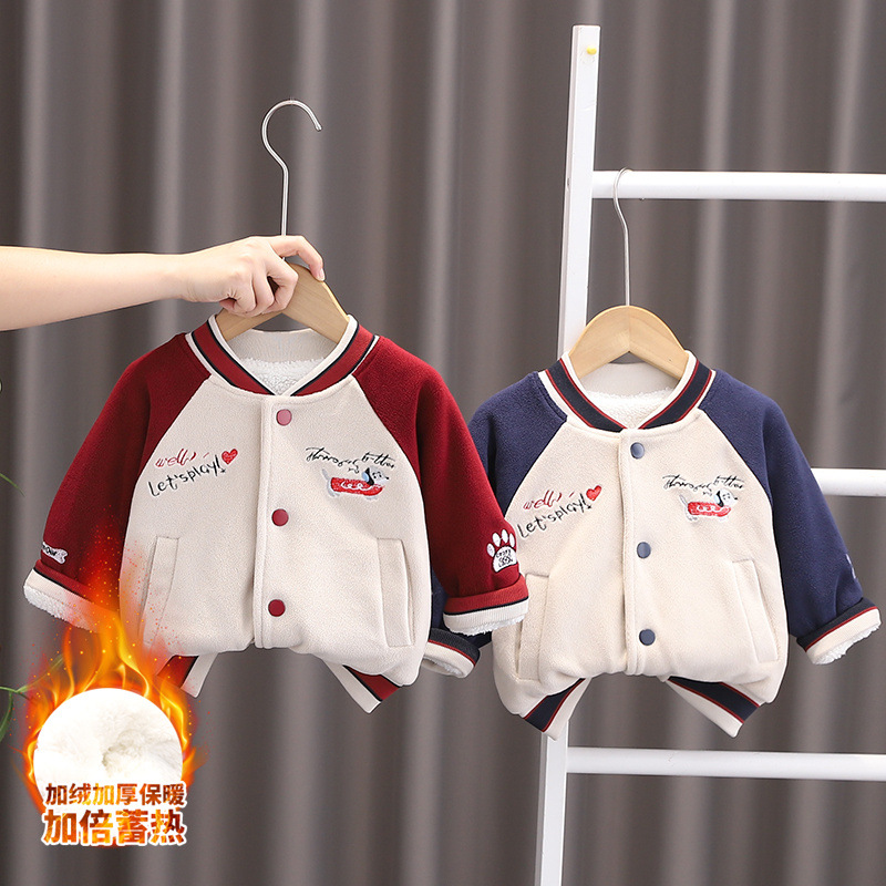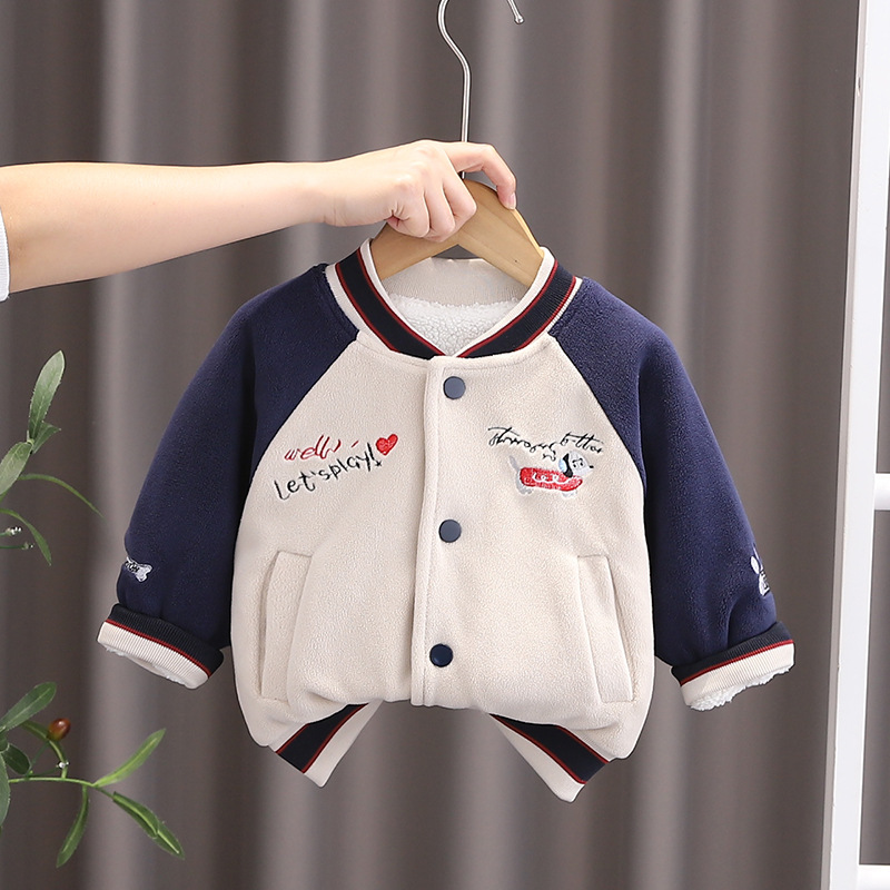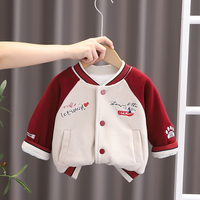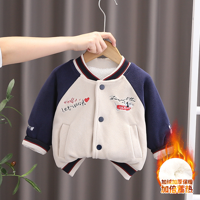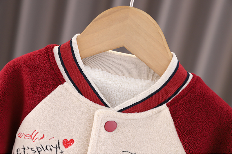 5 개의 작은 7 개의 아동복 2024 가을과 겨울 새로운 0-5 세 어린이 소년 자수 편지 양털 야구 세트