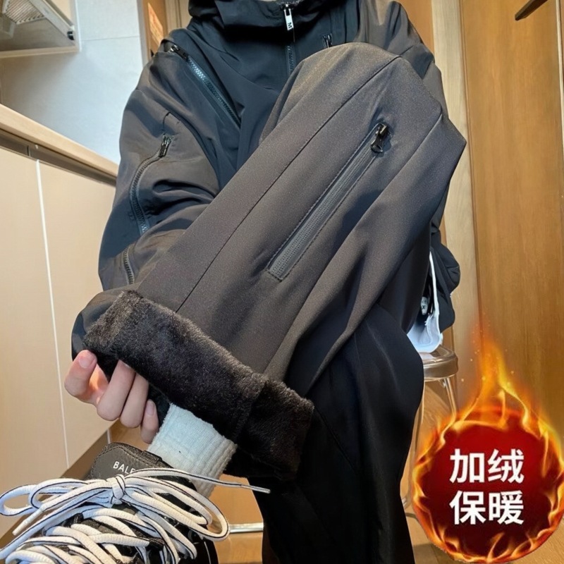 기모 방수 충전 바지 남성용 가을 및 겨울 외부 착용 미국식 크록 바지 여성용 캐주얼 스트레이트 야외 등반 방풍 바지스토어 가기