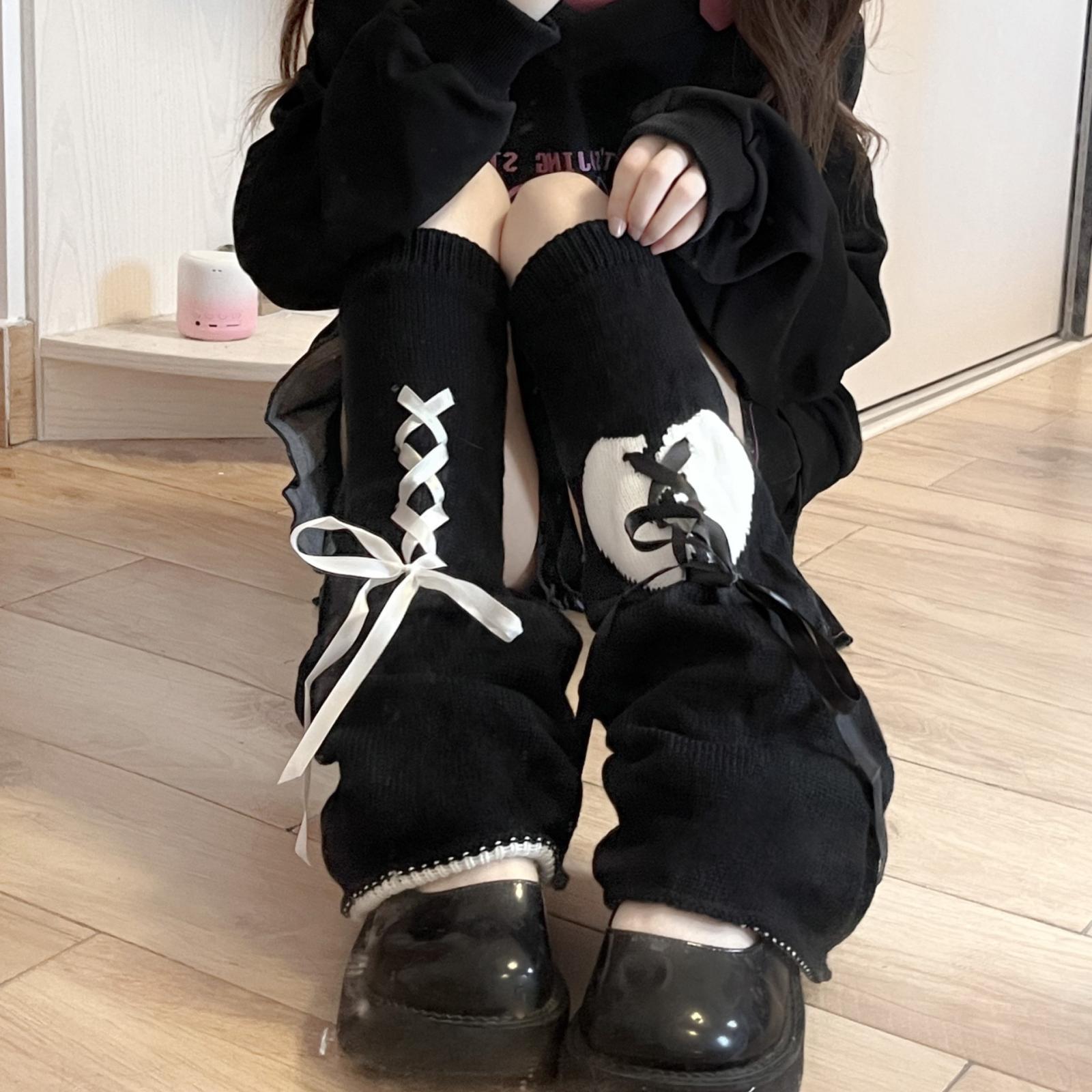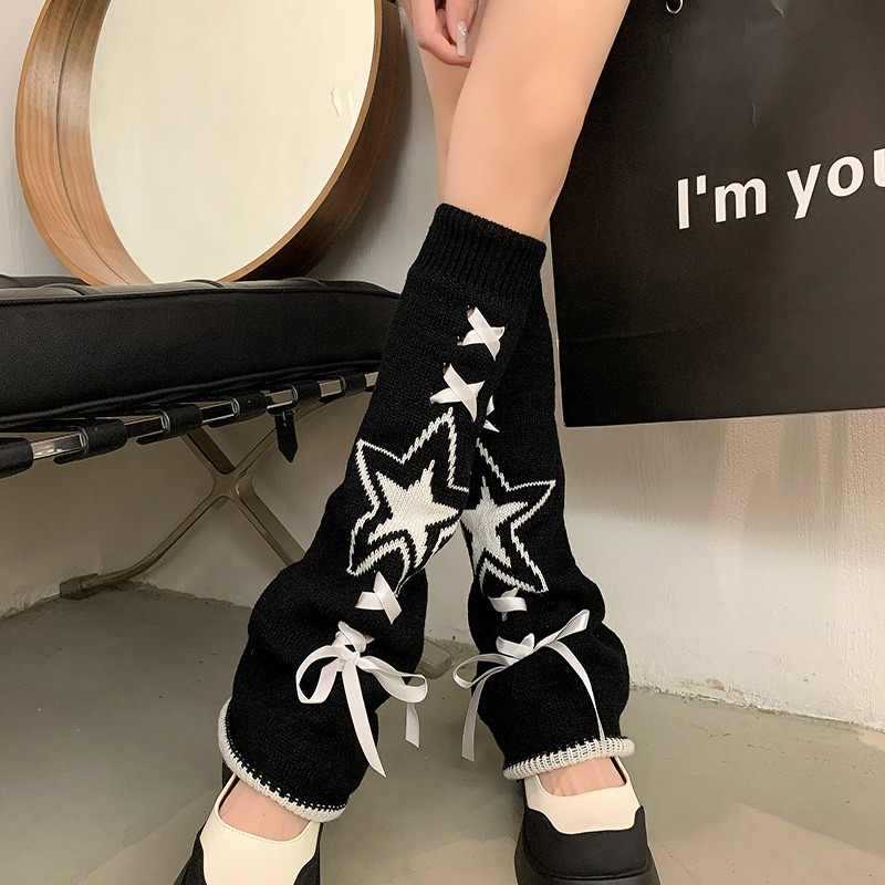 니트 플라 양말 여성 리본 스타 송아지 양말 스파이스 걸스 송아지 양말 하위 문화 Y2K 맞춤형 스택 양말