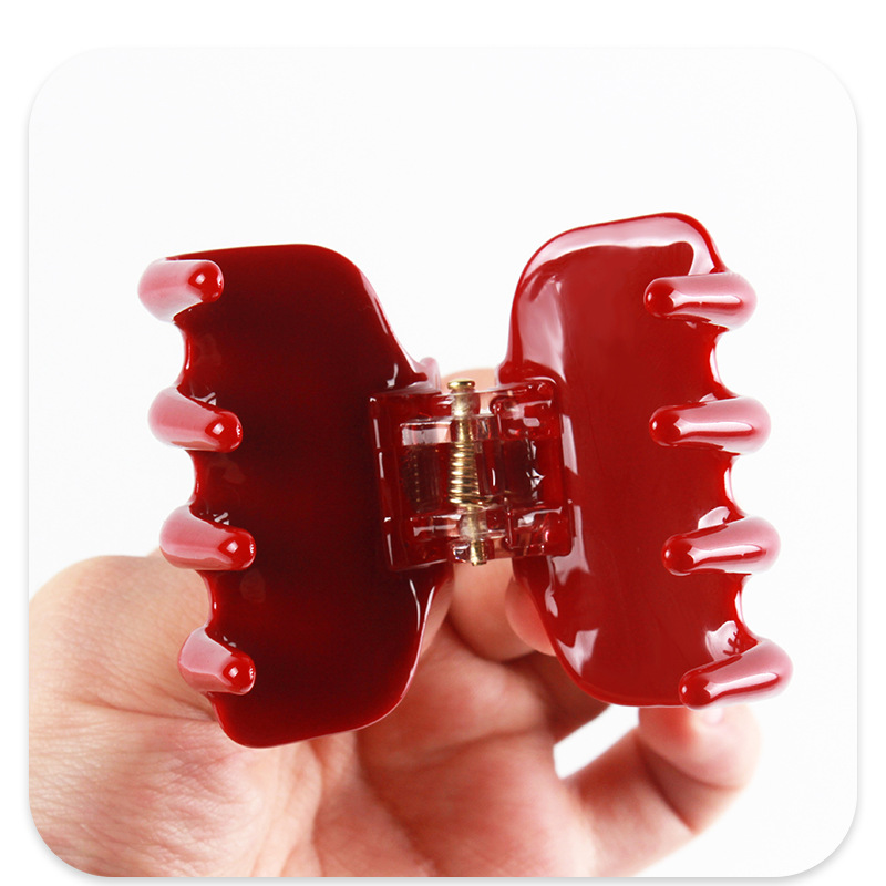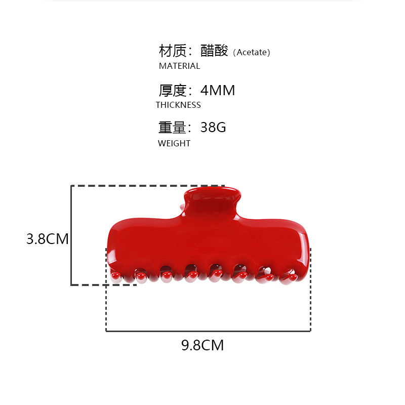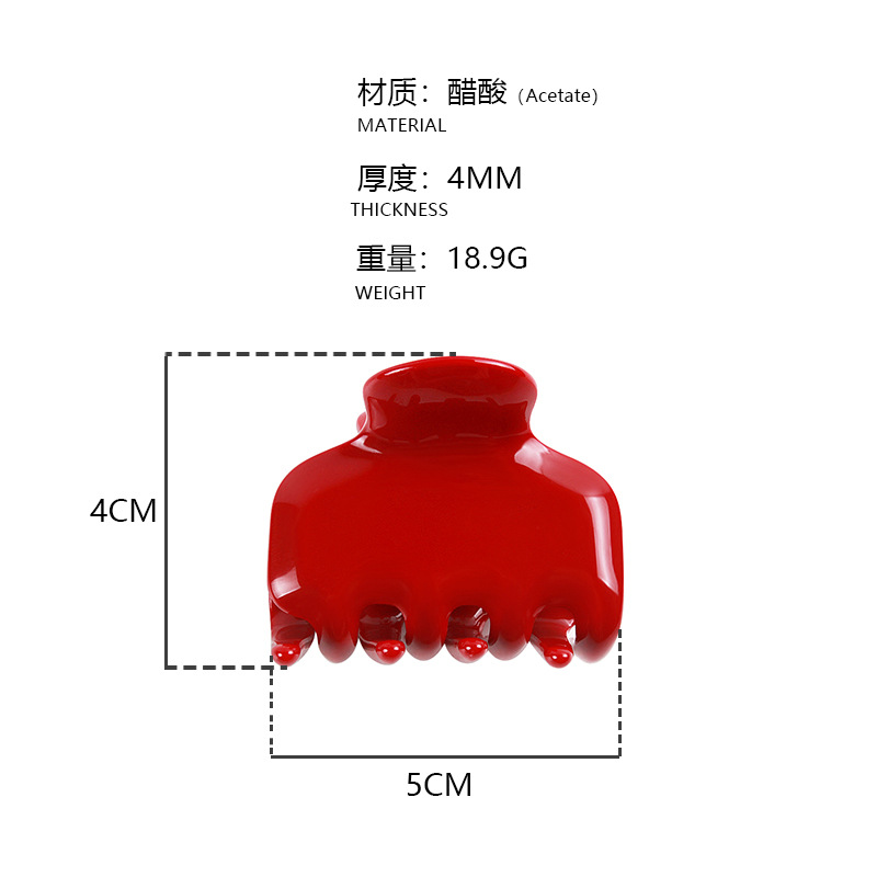 바오아이나의 새로운 여성용 헤어 클립, 달콤하고 귀여운 젤리 컬러의 레드 헤어 클립, 두꺼운 4mm 아세테이트 샤크 클립