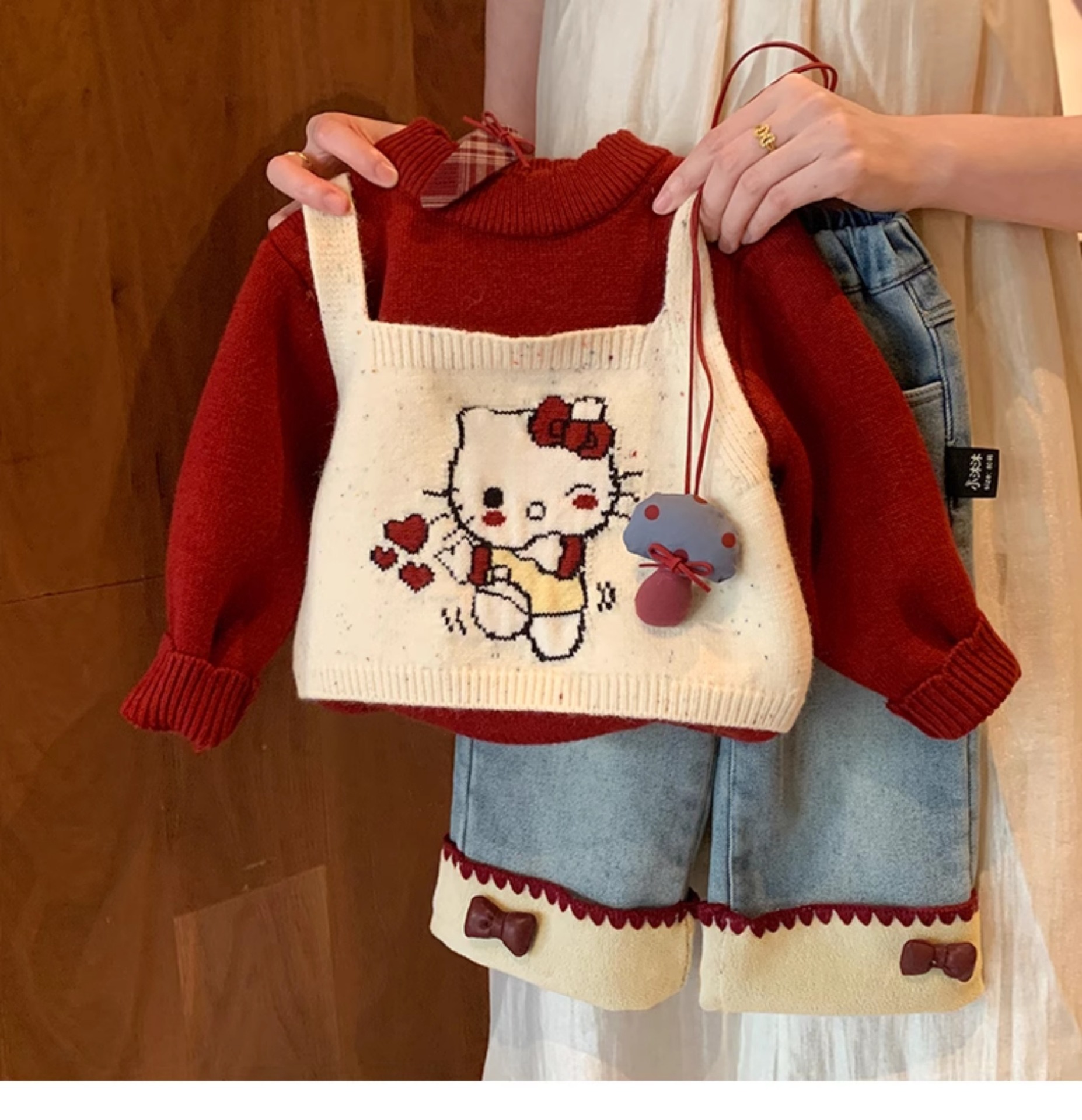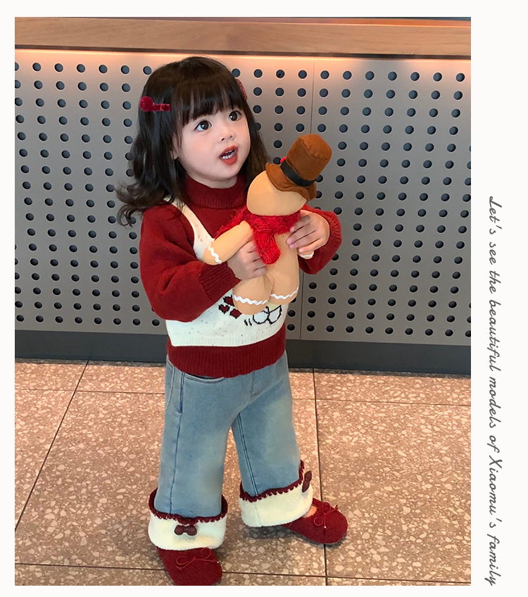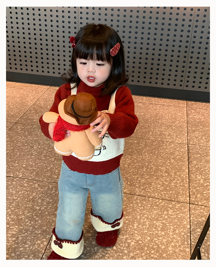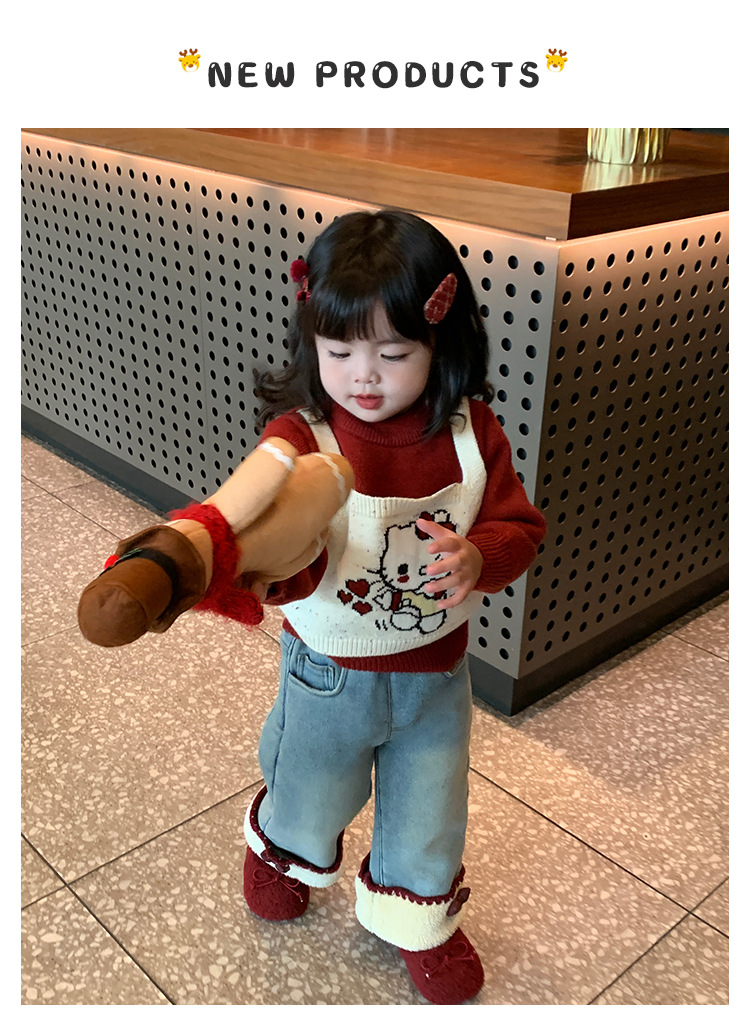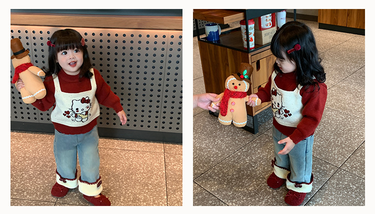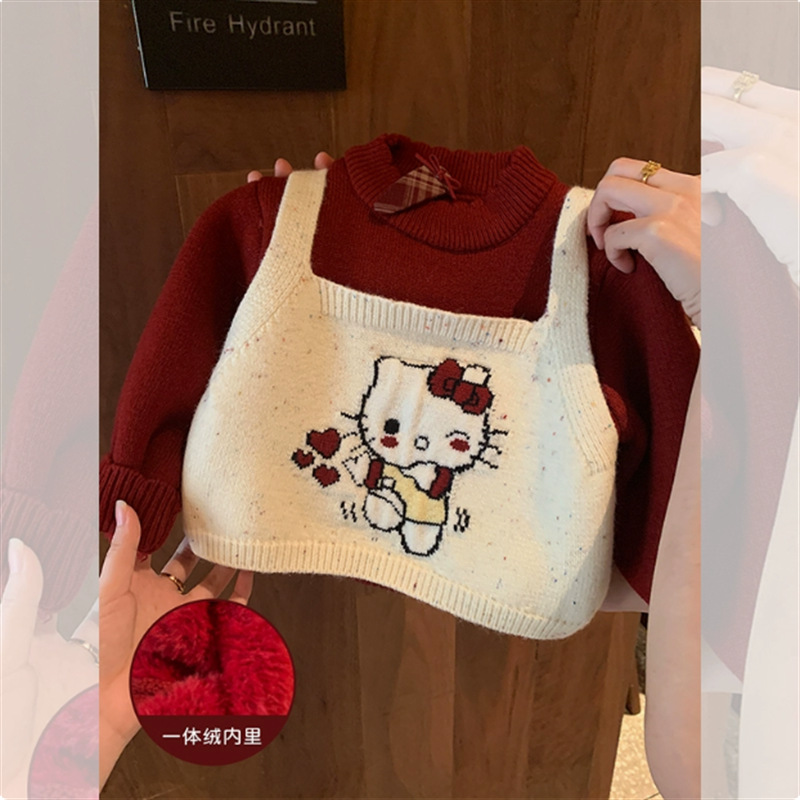 달콤한 소녀 스타일의 두꺼운 스웨터, 가짜 투피스 디자인, 새로운 스타일의 아기 소녀용 귀여운 올인원 스웨터스토어 가기