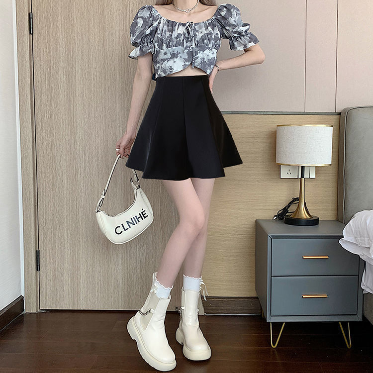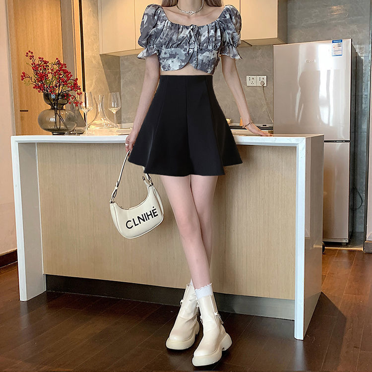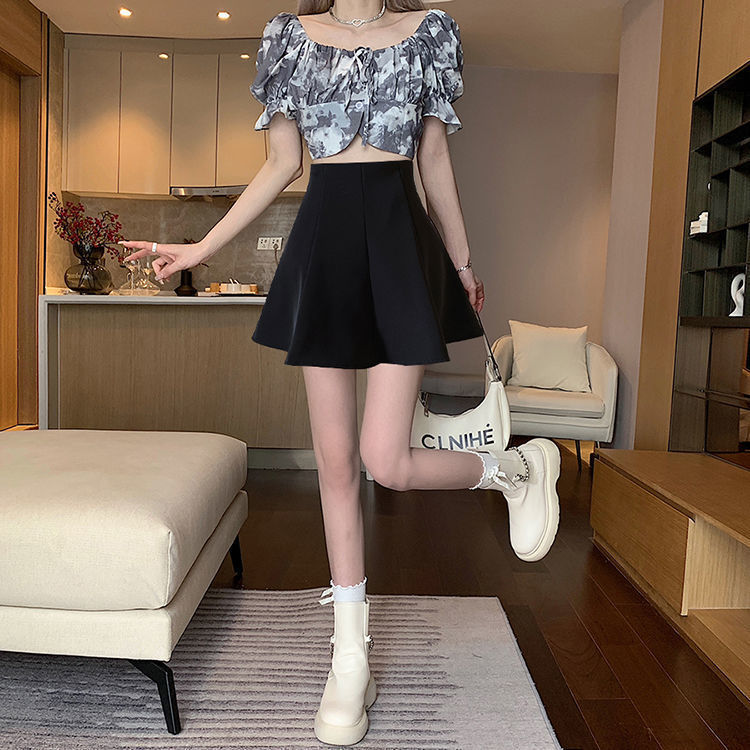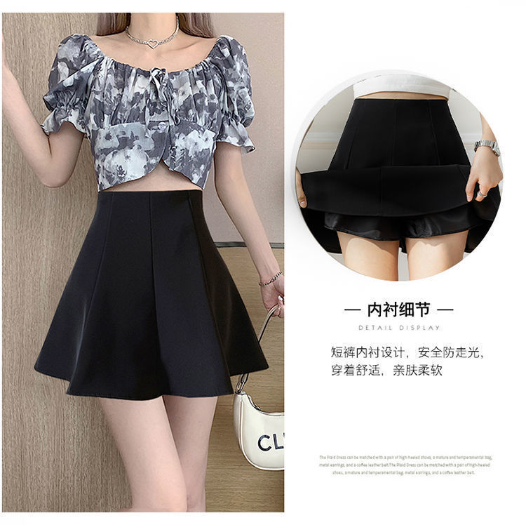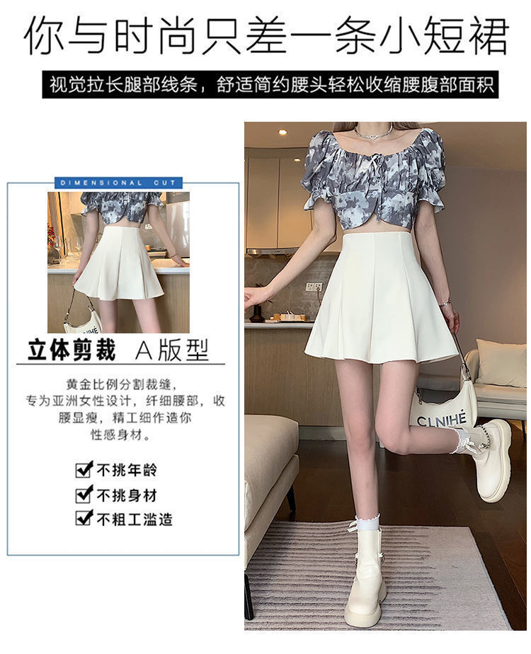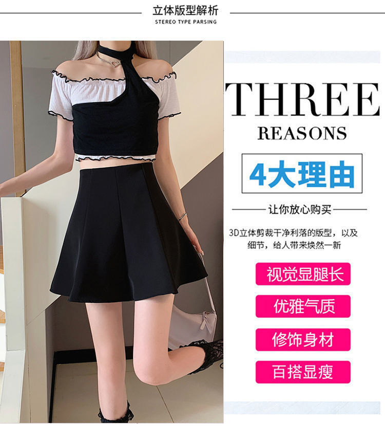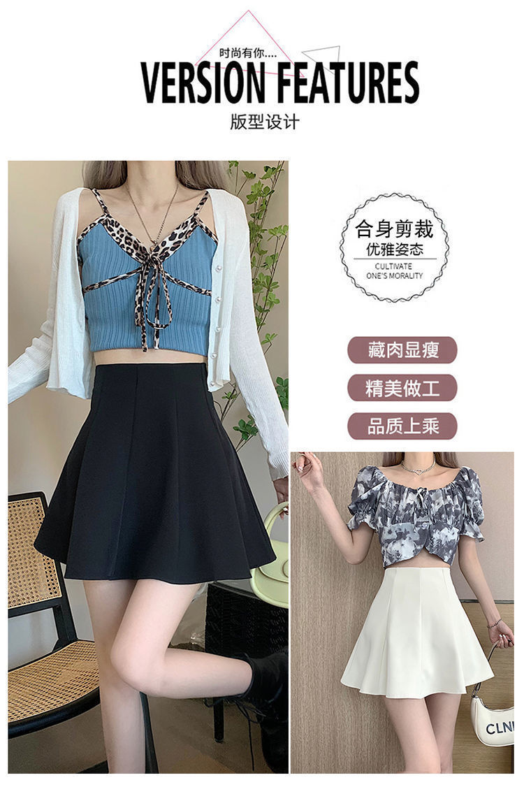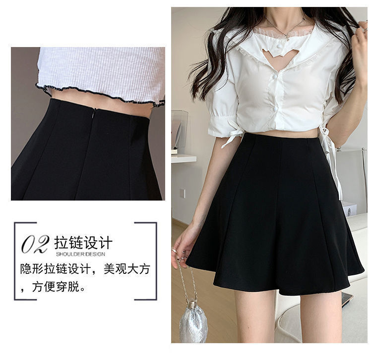 블랙 하이 웨이스트 플리츠 스커트 여자 2023 년 여름 뉴 올 매치 슬림 A-라인 투투 쇼트 스커트 니치 세련된 우산 스커트스토어 가기