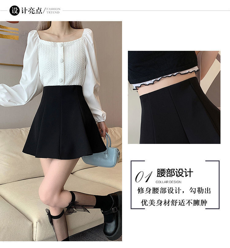 블랙 하이 웨이스트 플리츠 스커트 여자 2023 년 여름 뉴 올 매치 슬림 A-라인 투투 쇼트 스커트 니치 세련된 우산 스커트
