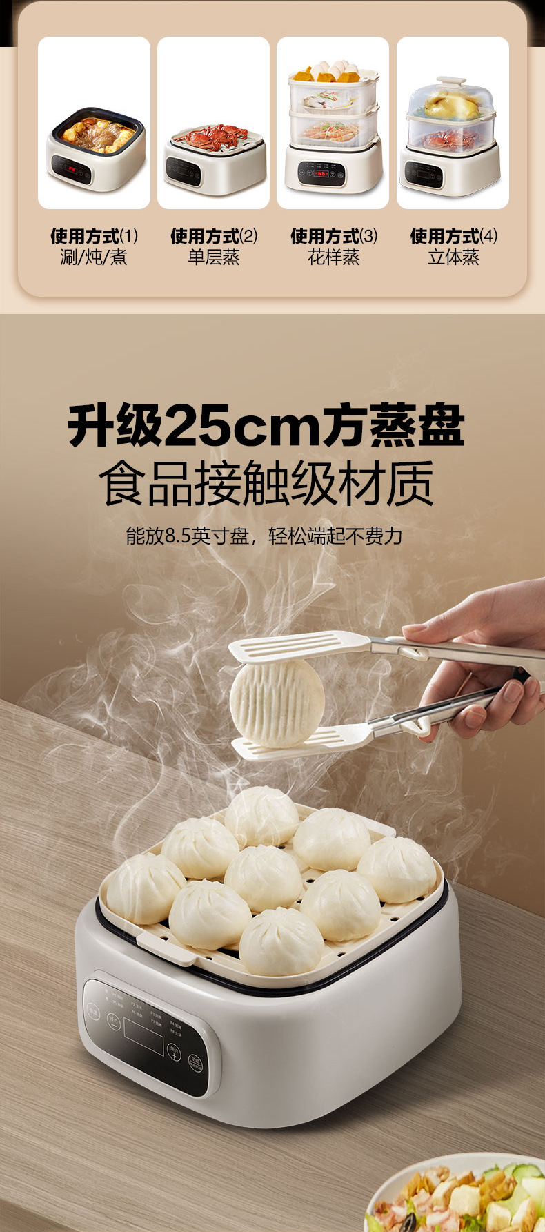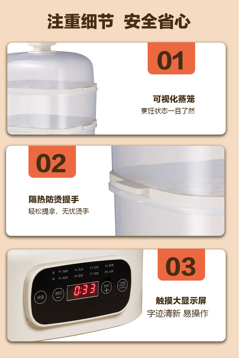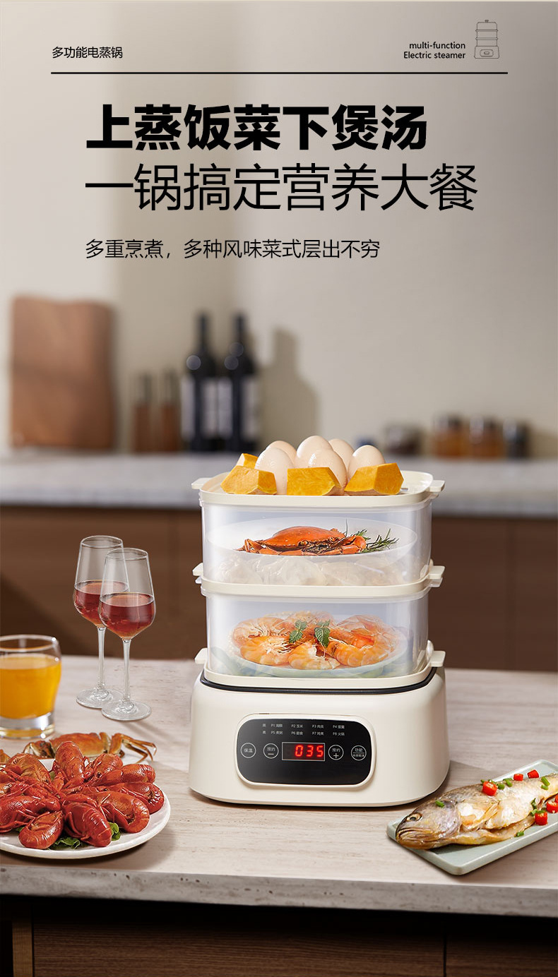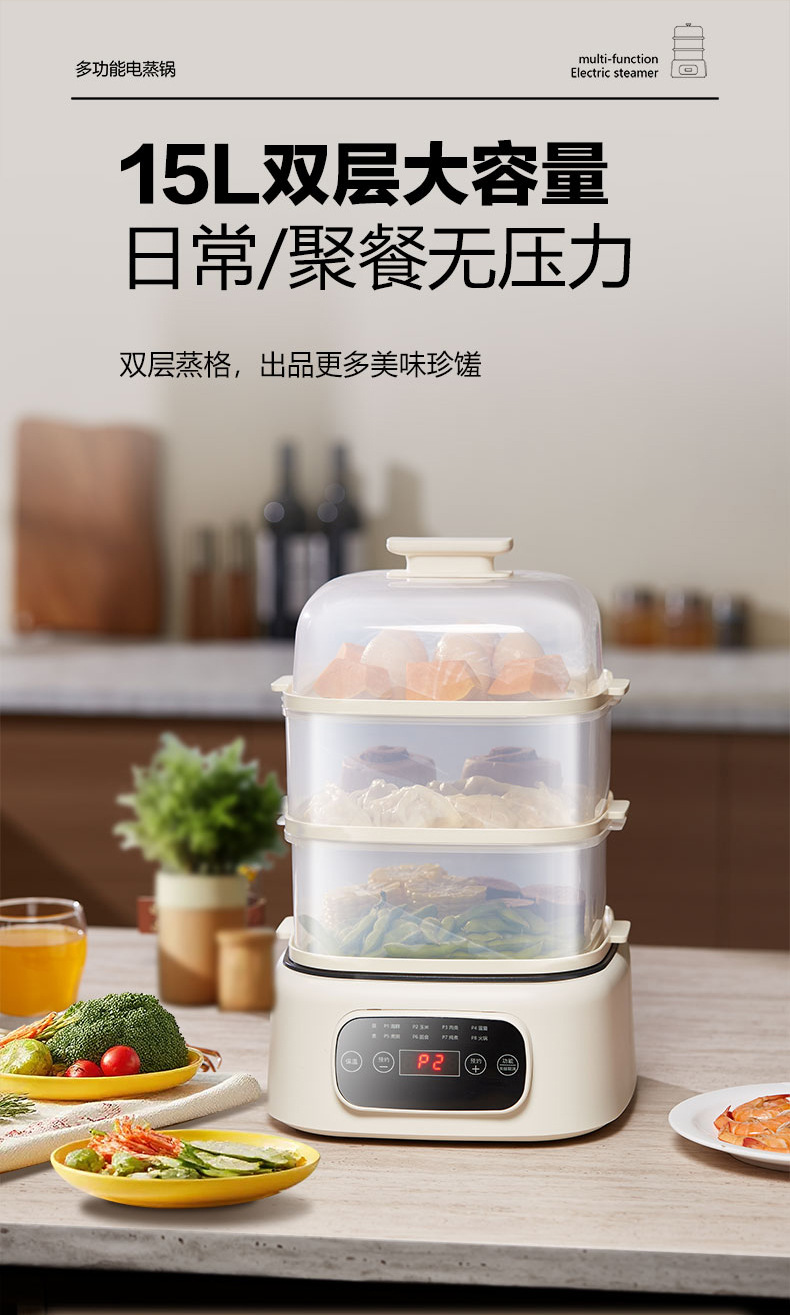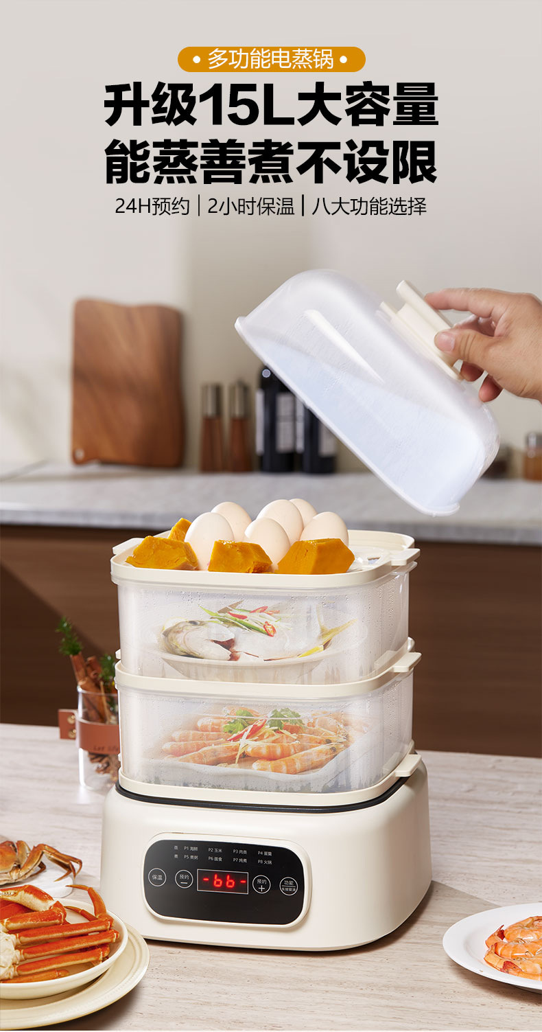 10리터 이중층 전기 찜기, 위에 찜하고 아래에 끓이는 스팀팟, 스테인리스 가정용 찜기, 전기 냄비, 터치 조작스토어 가기