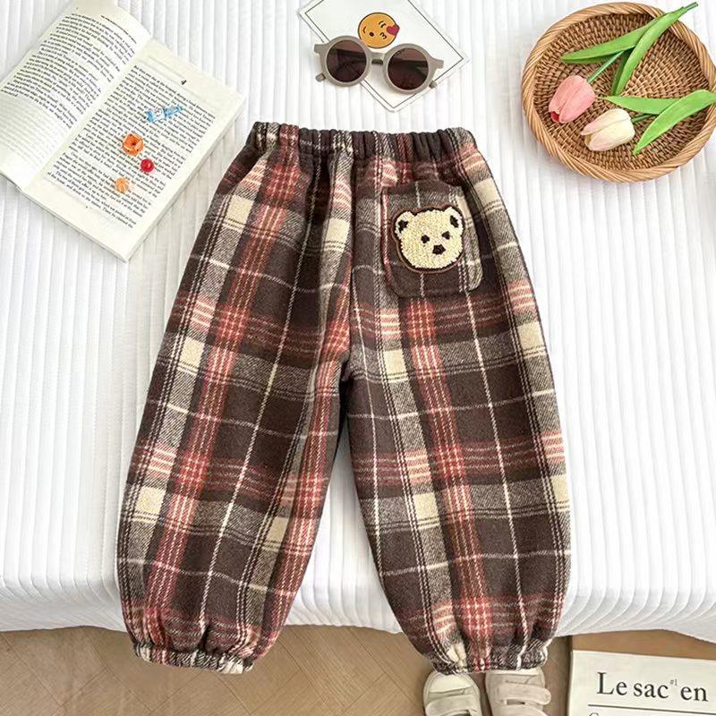 [보물 옷장] 새 기모 서양식 어린이 아기 바지 따뜻한 원피스 벨벳 올매치 캐주얼 격자 바지