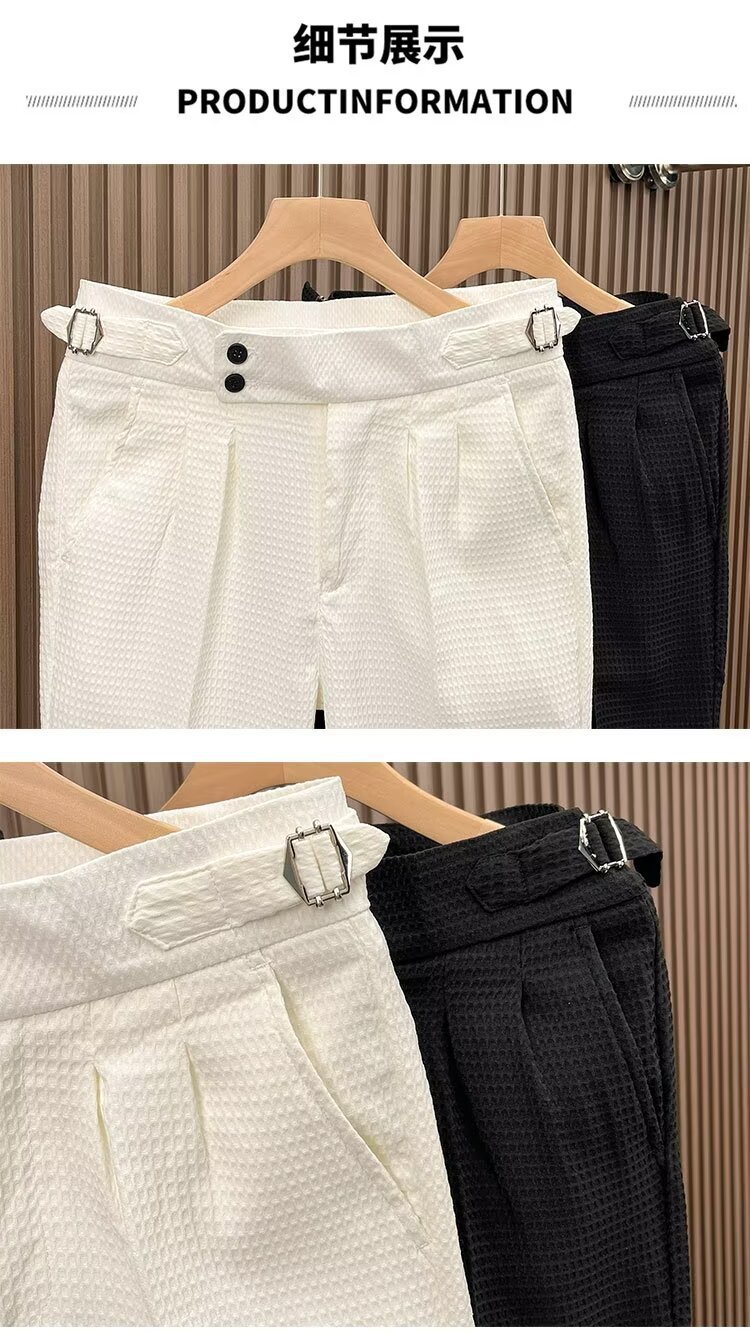 와플 캐주얼 바지 남자 하이 엔드 센스 패션 한국 스타일 슬림 핏 다리 나폴리 더피 하이 웨이스트 세트 바지