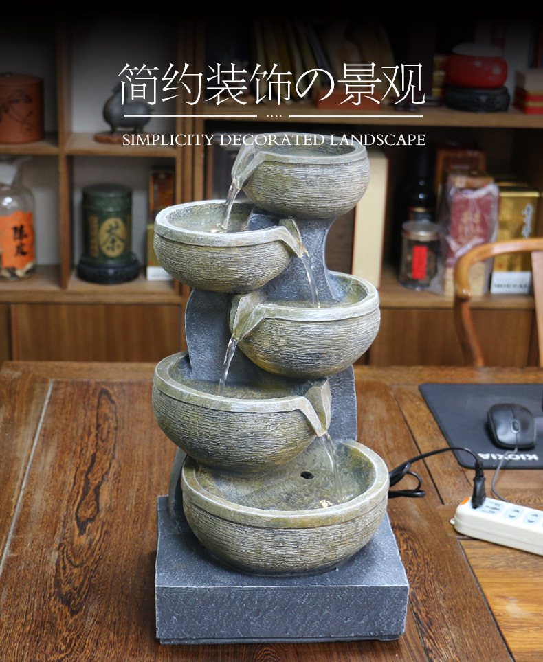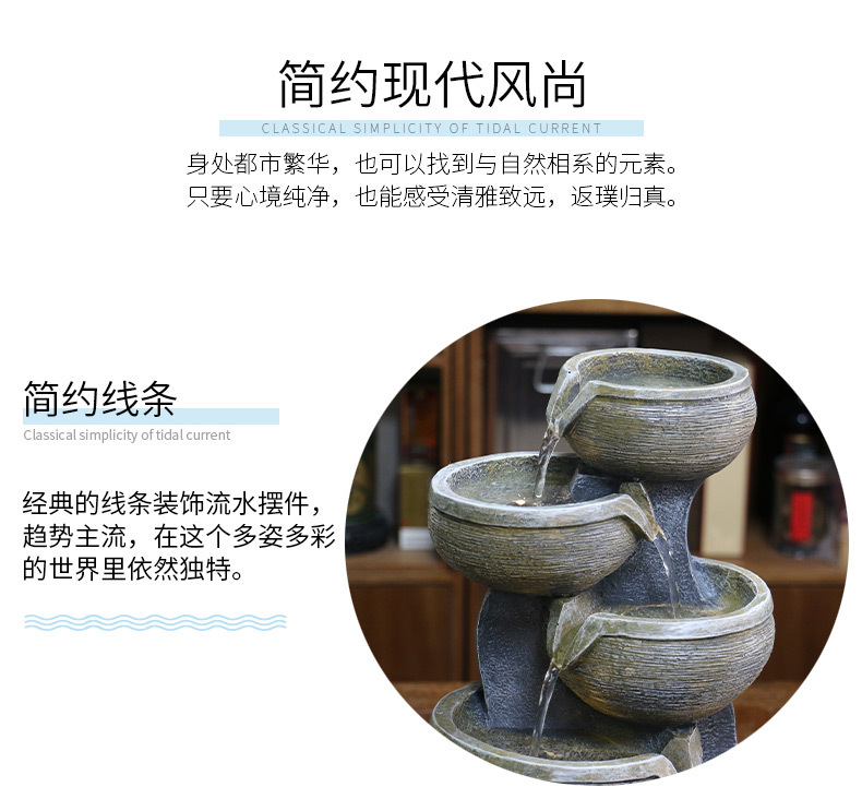 현대 빛 고급 물 장식품 순환 분수 부 만들기 풍수 공 거실 창조적 인 가습기 회사 오프닝 선물스토어 가기