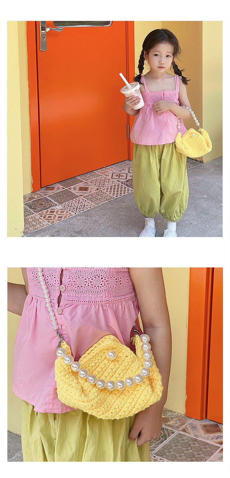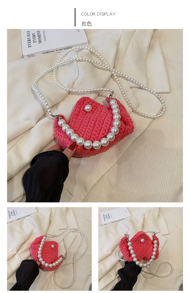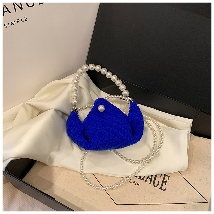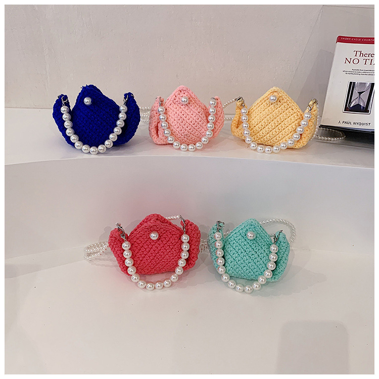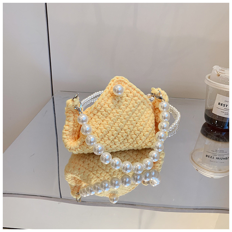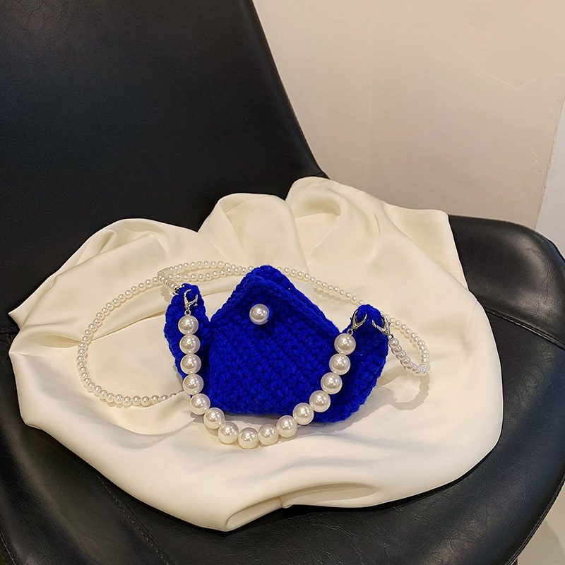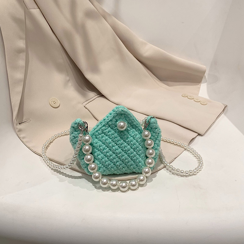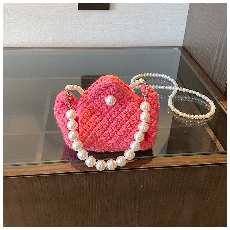 인터넷 축하 소녀 크로스 바디 가방 아기 미니 니트 산 피크 어깨 가방 서양 소녀 진주 체인 핸드백