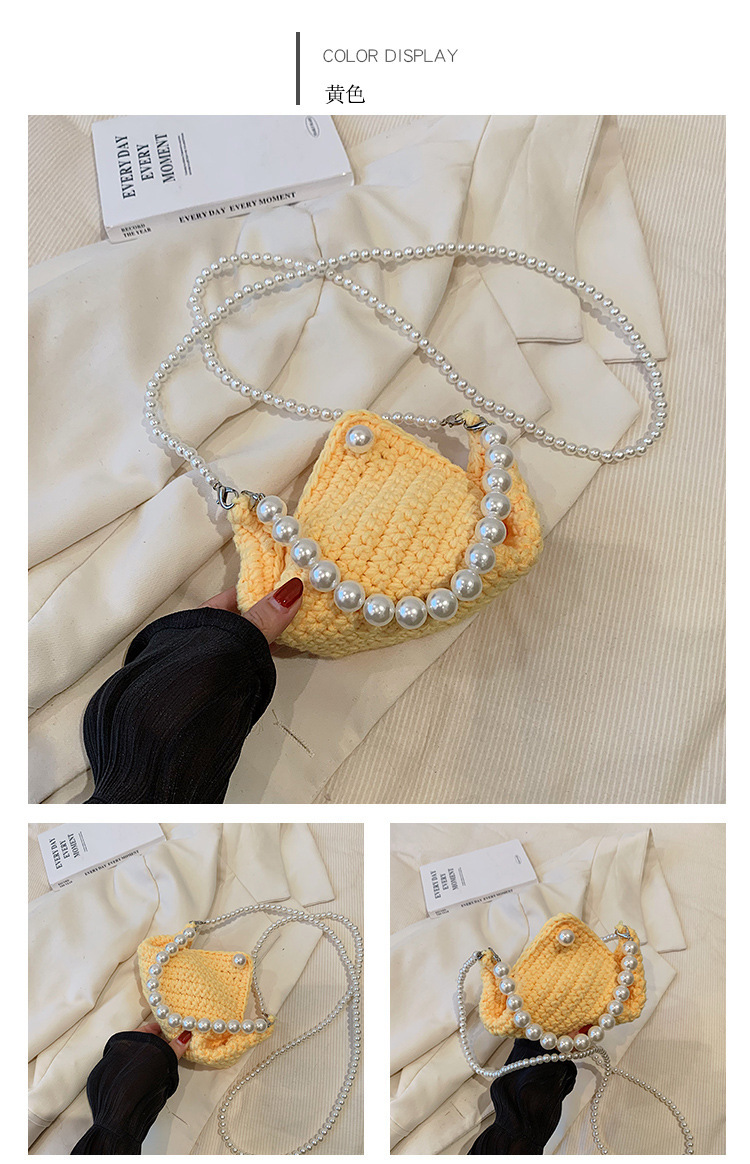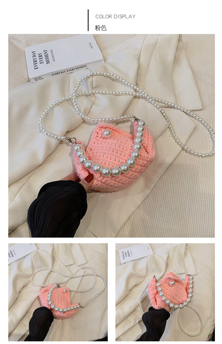 인터넷 축하 소녀 크로스 바디 가방 아기 미니 니트 산 피크 어깨 가방 서양 소녀 진주 체인 핸드백스토어 가기