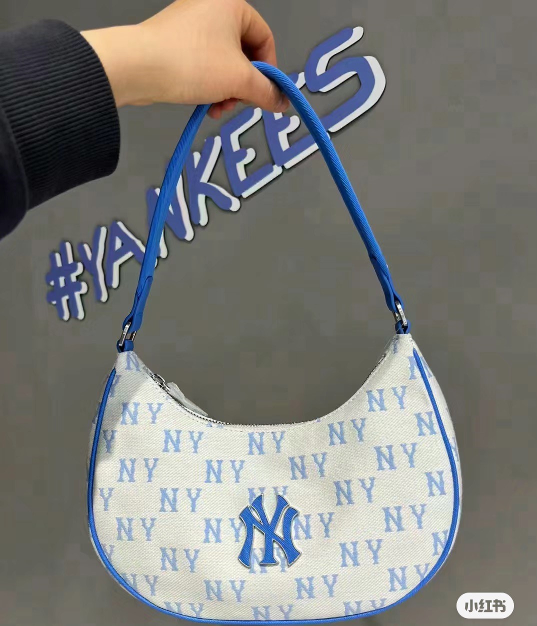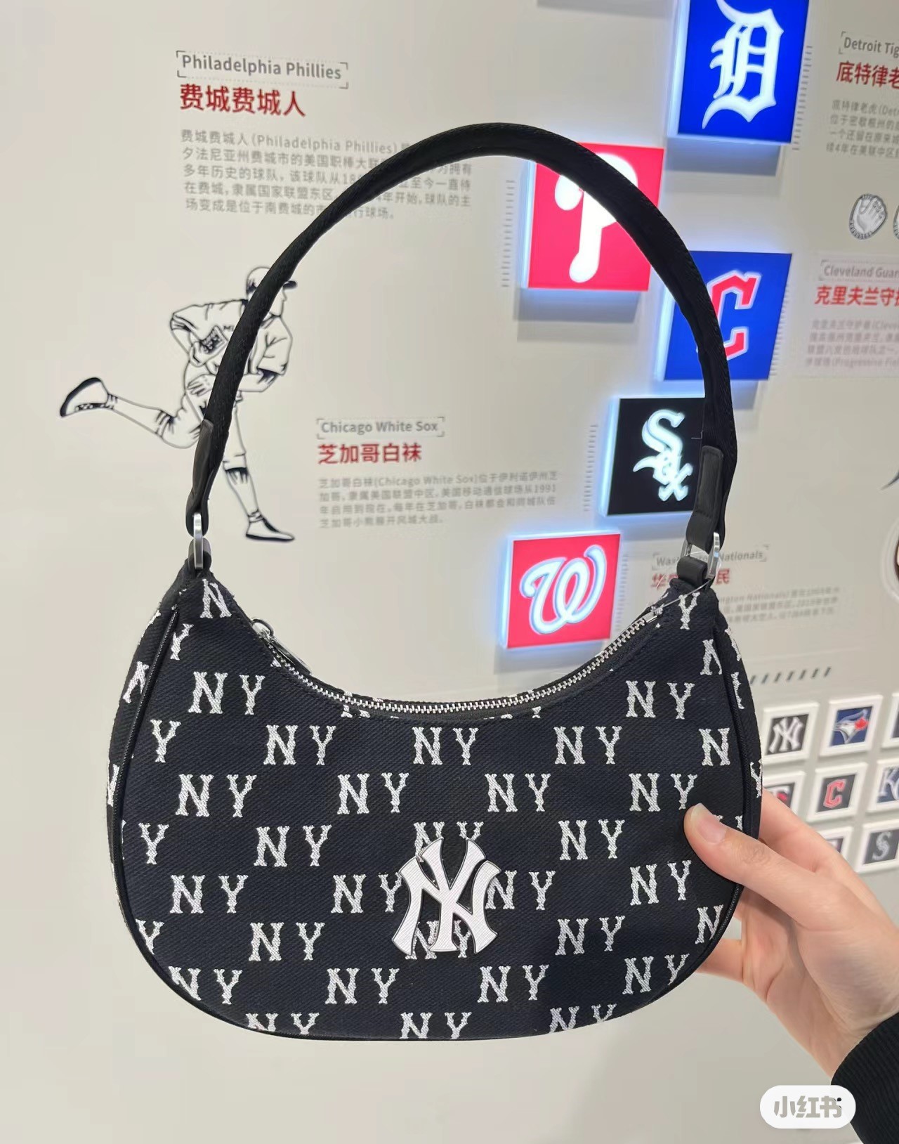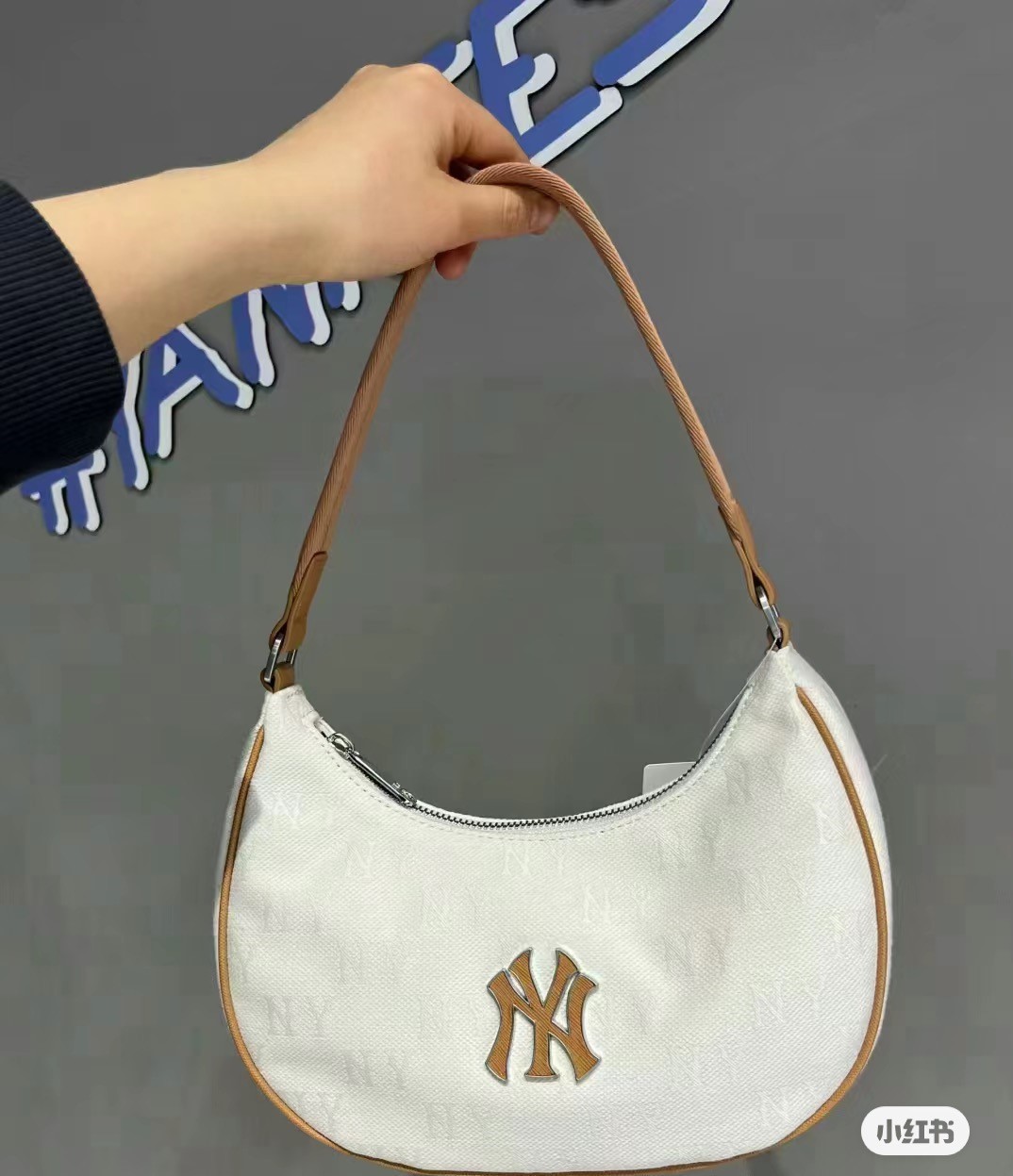 mlb2024 새로운 가죽 라벨 겨드랑이 가방 대용량 숄더 핸드백 레트로 풀 라벨 ny 문 가방 캐주얼 가방스토어 가기