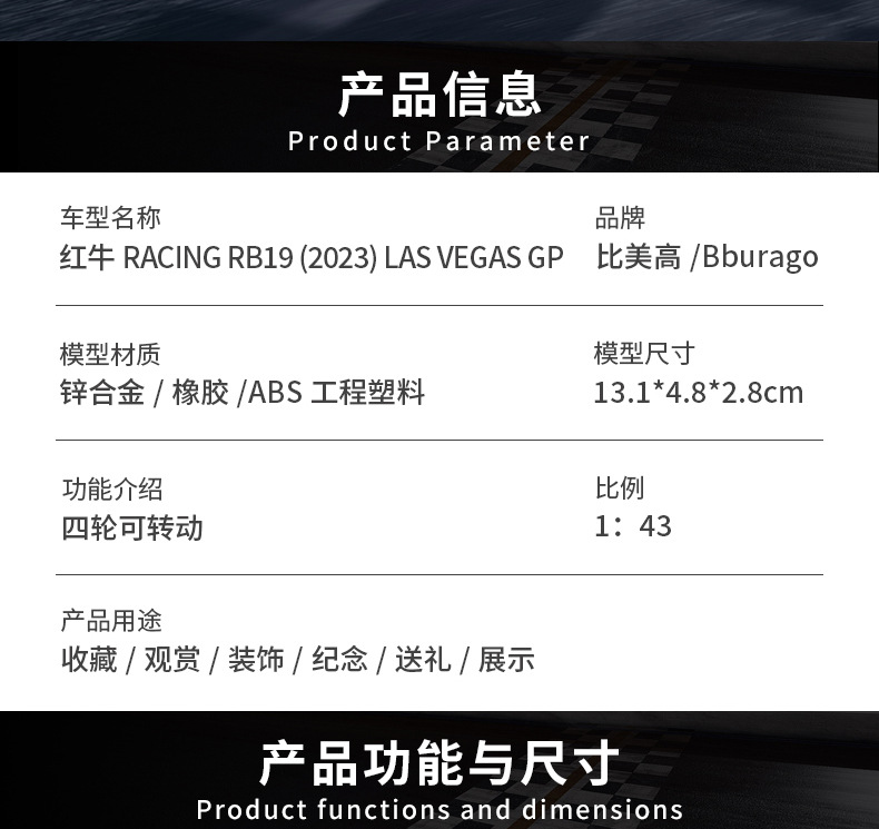비미고 1:43 레드불 RB19 F1 자동차 모형 포뮬러 레이싱 모델 시뮬레이션 합금 2023