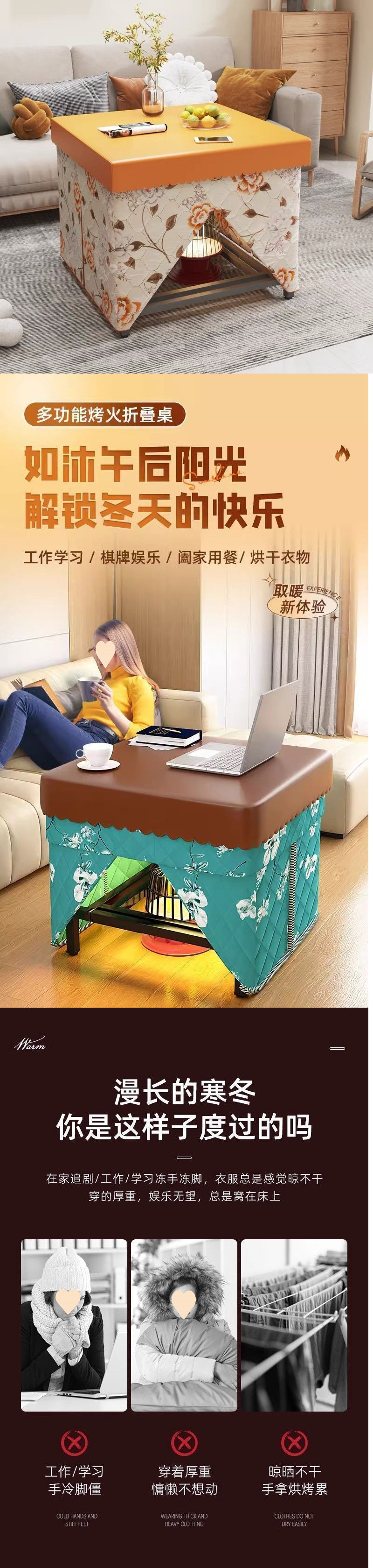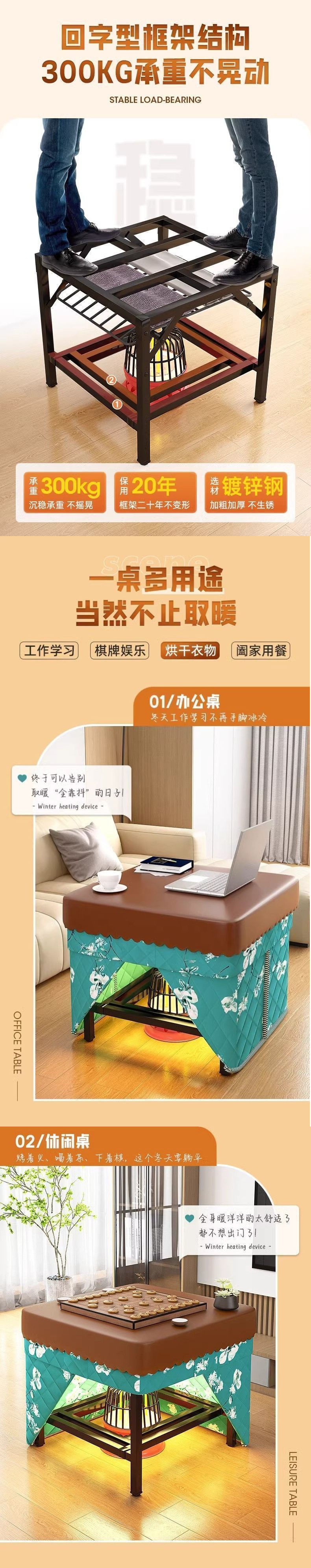 구이 불 테이블 접이식 테이블 가정용 다기능 구이 불 랙 스퀘어 겨울 식사 및 학습 난방 테이블