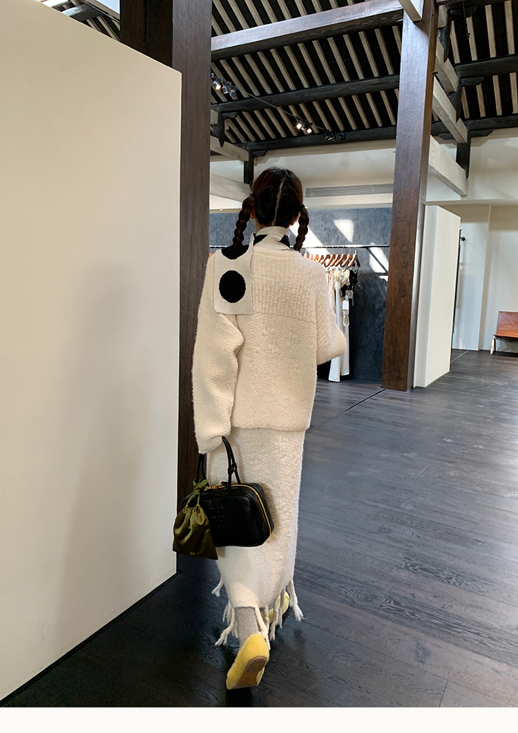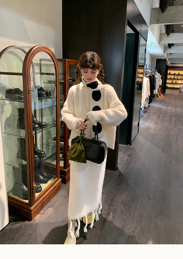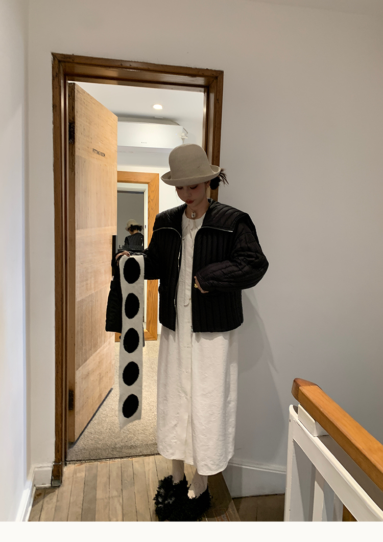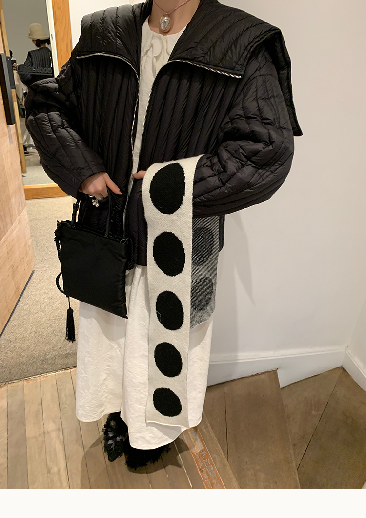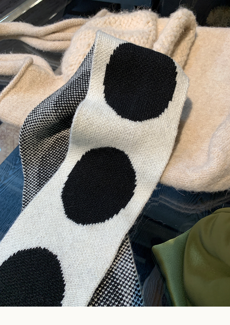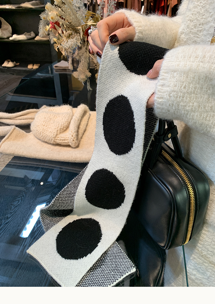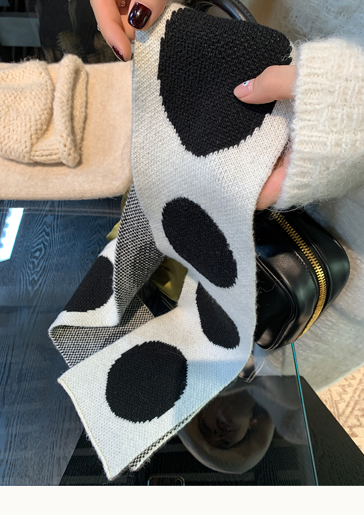 Lerouge Zhou Meimei 클래식 예술적 흑백 색상 라운드 기하학적 자카드 니트 스카프스토어 가기